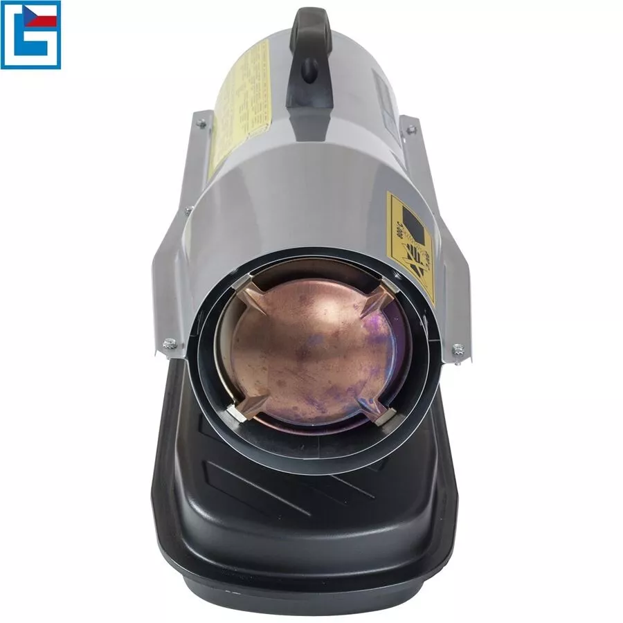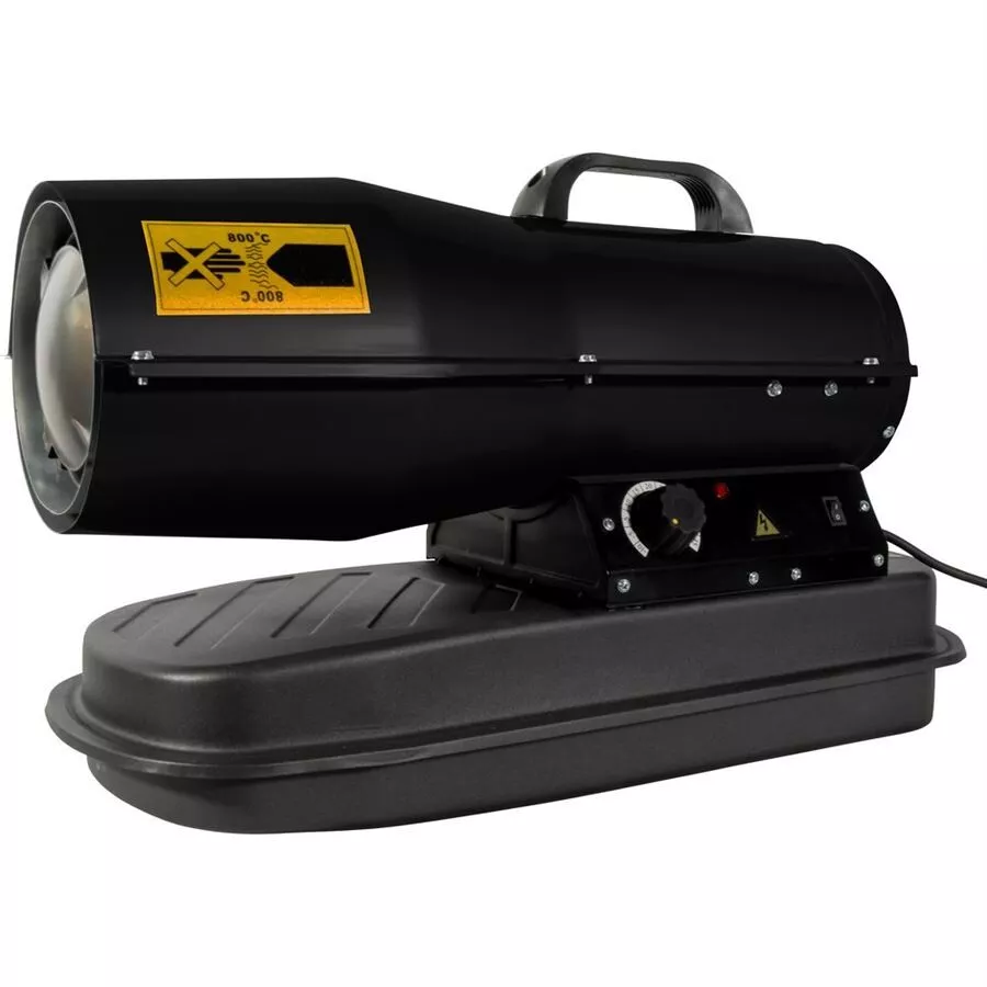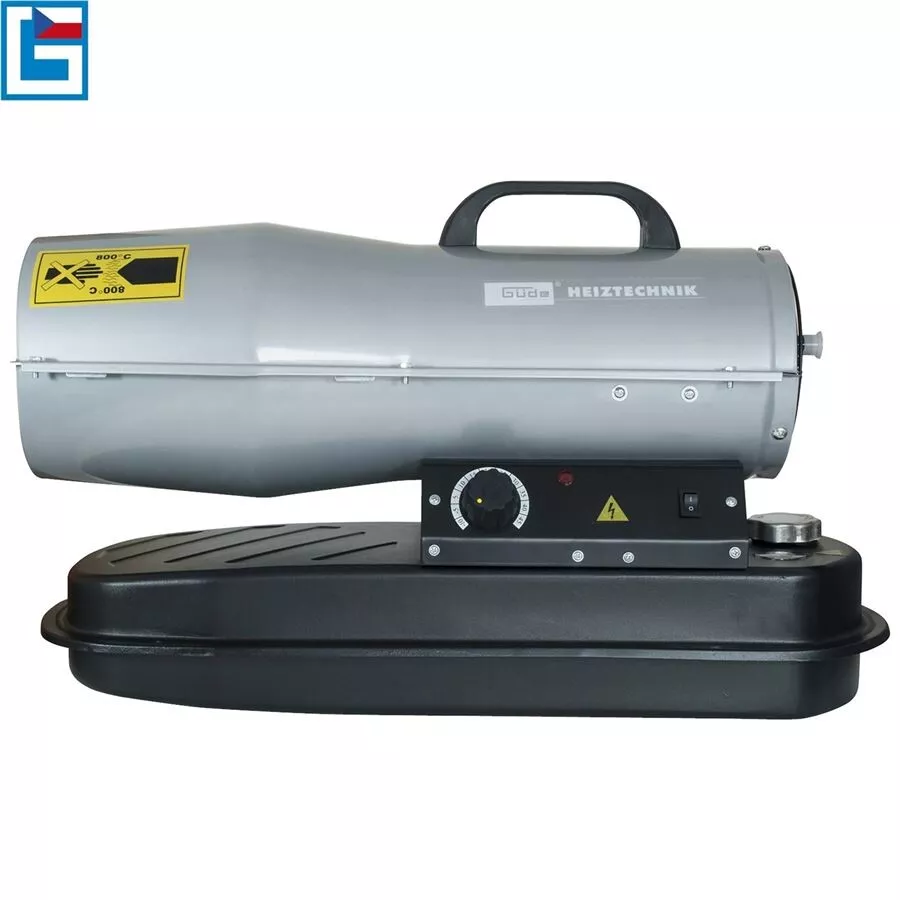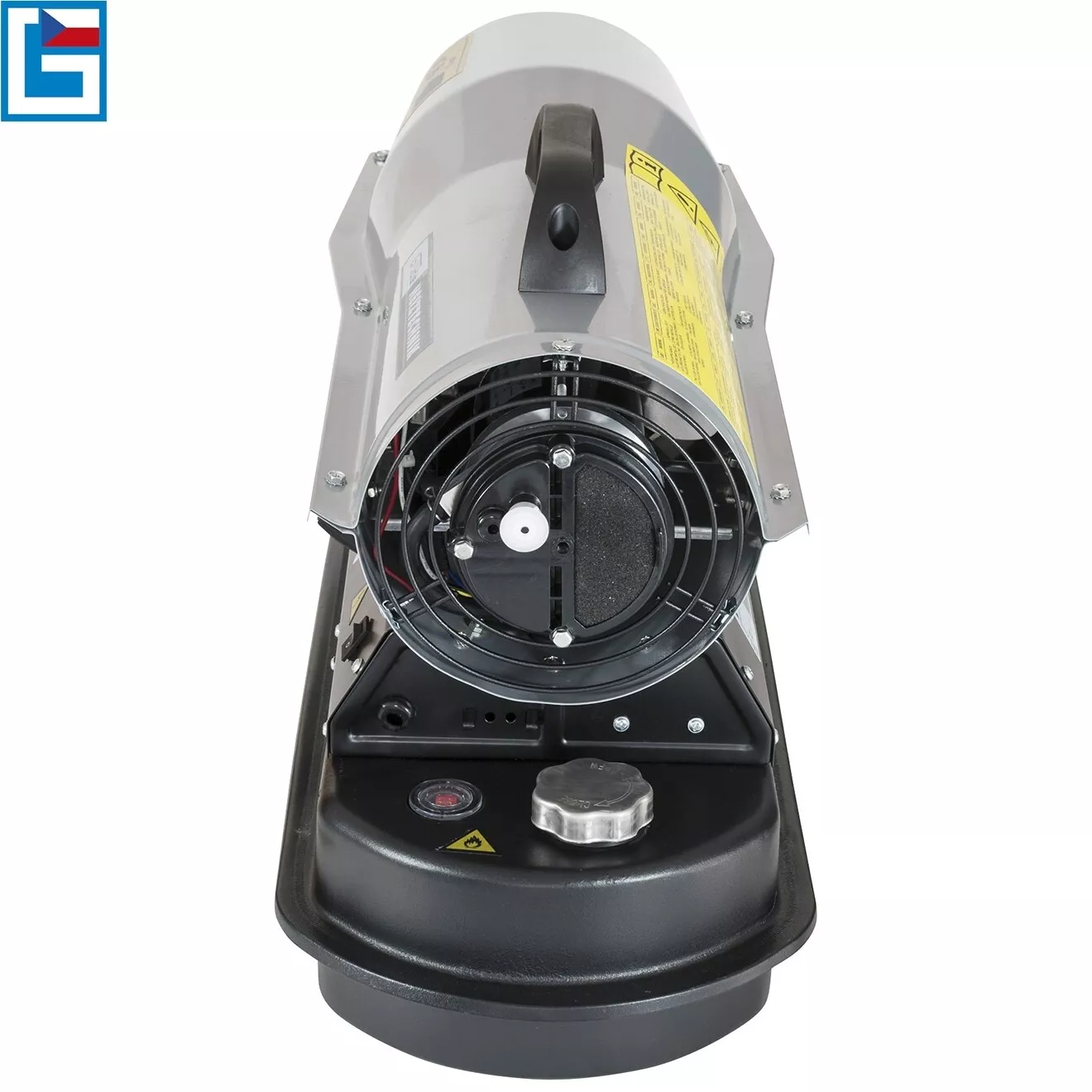 - Konstrukce: plášť turbíny z oceli (-> dvojitý), hořák z ušlechtilé oceli, opěrný podstavec s ovládacími prvky, 10 l palivová nádrž (-> včetně palivoměru, průměrná spotřeba: 1,7 l/hod.), transportní madlo