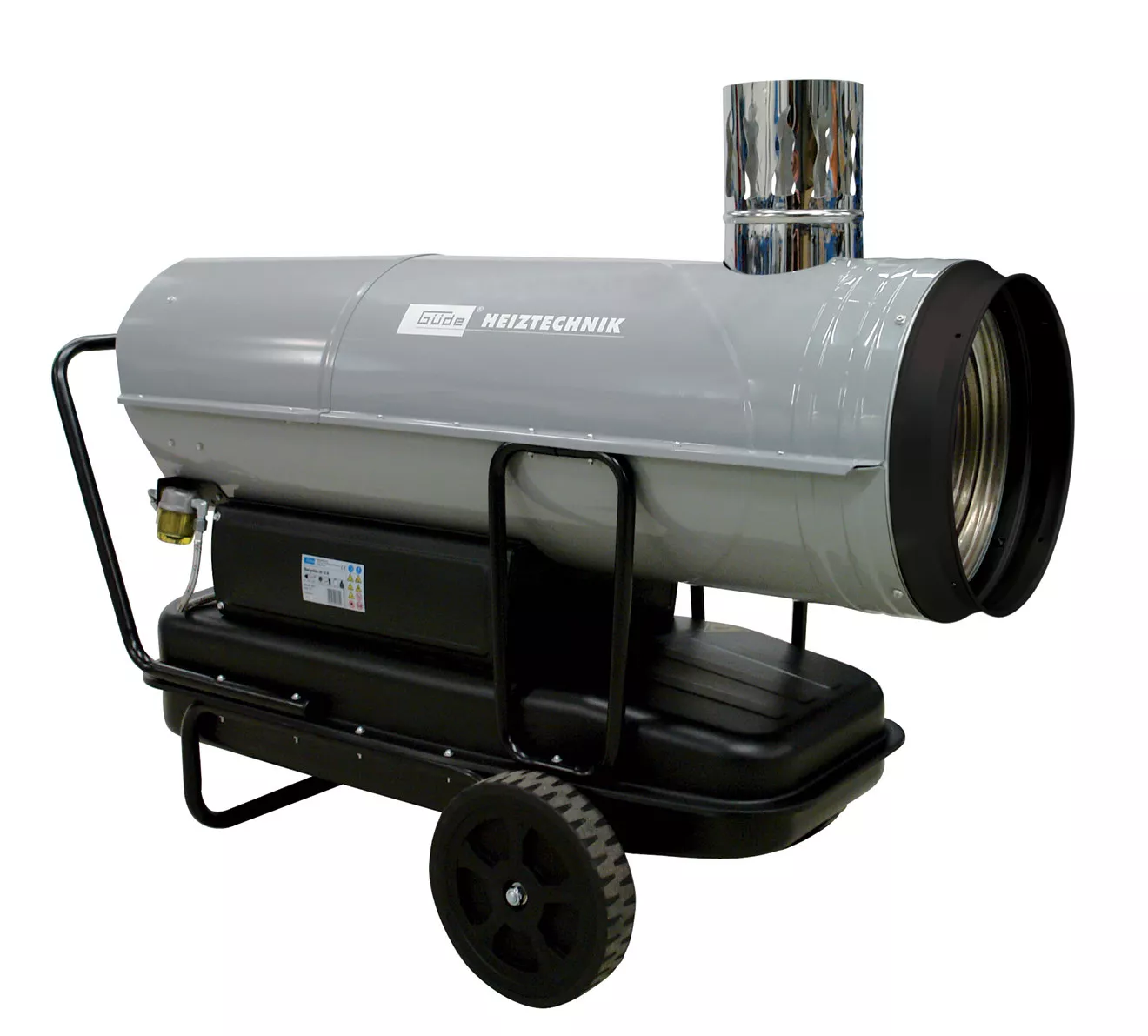 - Konstrukce: plášť turbíny/hořák z ušlechtilé oceli, opěrný podstavec s ovládacími prvky, termostat s digitálním displejem, výkonné palivové čerpadlo, 68 l palivová nádrž (-> včetně palivoměru, průměrná spotřeba: 4 l/hod.), transportní madlo, robustní podvozek