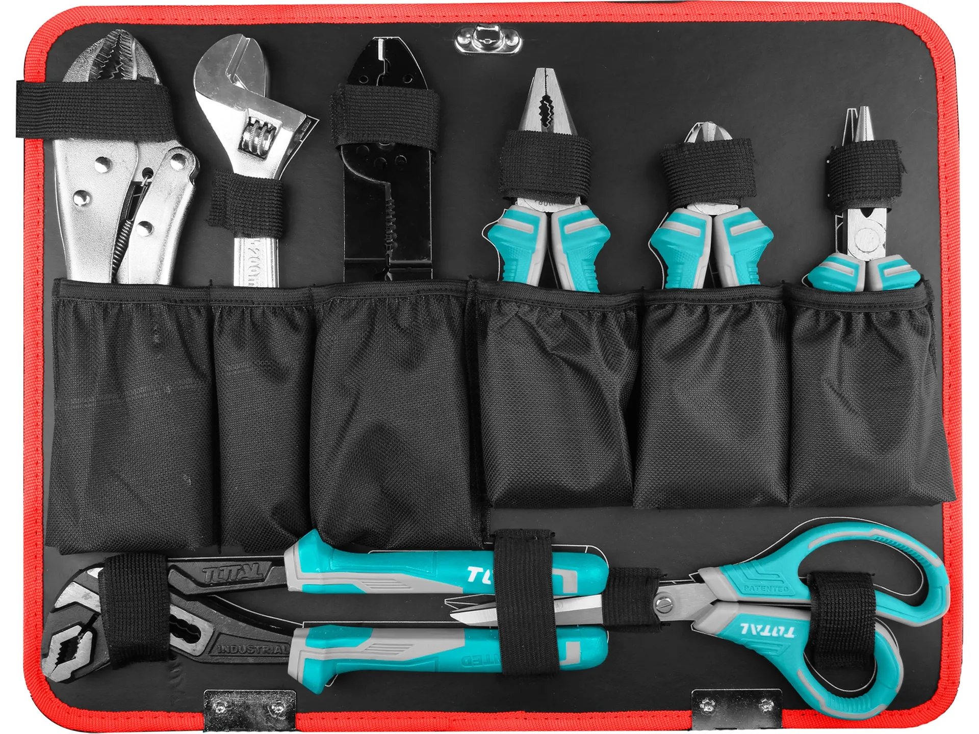 - Kleště: 180mm kombinované, 160mm půlkulaté přímé a 160mm štípací boční, 1ks SIKO kleště 250mm, 1ks rychloupínací kleště 250mm, 1ks odizolovací kleště 200mm