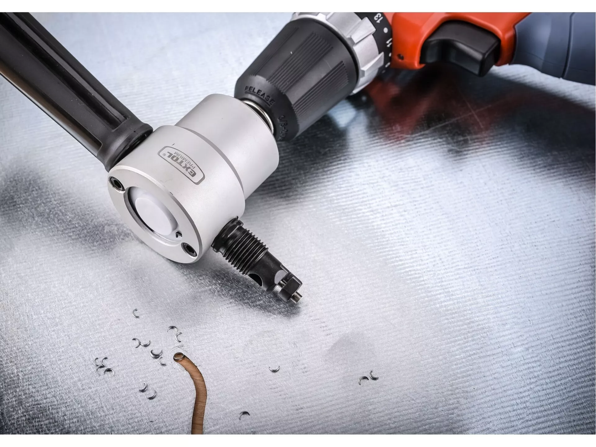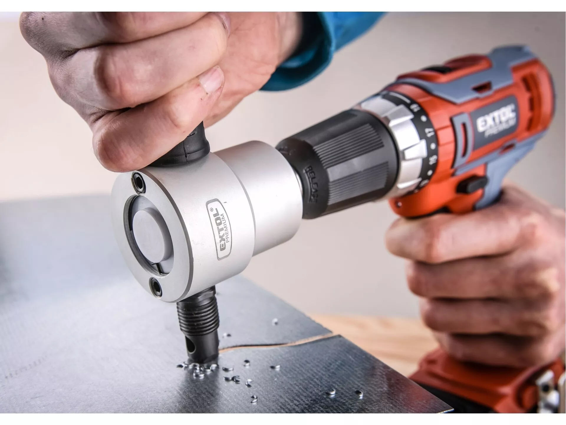 Nástavec na vrtačku k stříhání plechu, oboustranný EXTOL PREMIUM 8813651