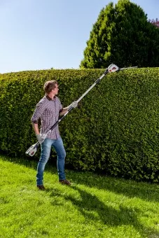 - Nástavec - nůžky na živý plot AL-KO HTA 36 Li. Díky prodloužení tyče lze prořezávat i vyšší keře (až do výšky 3,5 metrů), a to bez použití žebříku. Nízká hmotnost ve spojení s přiloženým nosným popruhem umožňuje snadnou práci. Tichý provoz, bez výfukových plynů a bez rušivého kabelu. Lištu lze snadno individuálně přizpůsobit v 7 krocích. Z řady EnergyFlex.