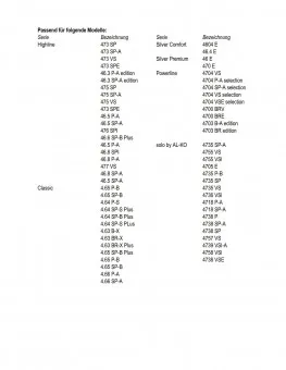 - 4.64 SP-S Plus, 4.64 SP-B Plus, 4.64 P-S, 4.64 SP-S, 475 SP-A,475 VS, 473 SPE, 4,65 SP-A, 4,65 SP-B Plus, 4,65 P- 4,66 P-A, 4,66 SP-A