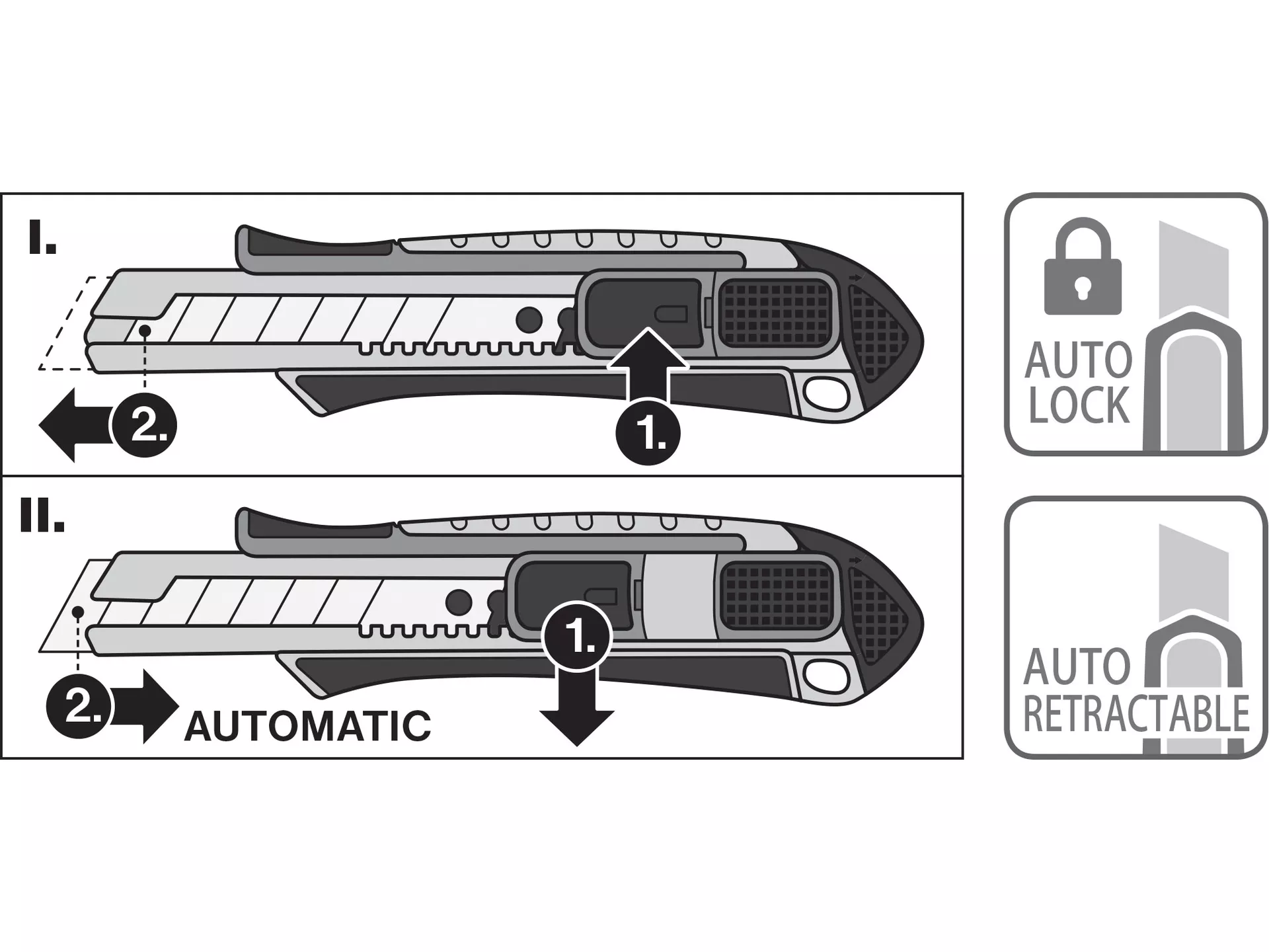 - Doplňující parametr: s funkcí rychlého povysunutí a automatického zasunutí čepele