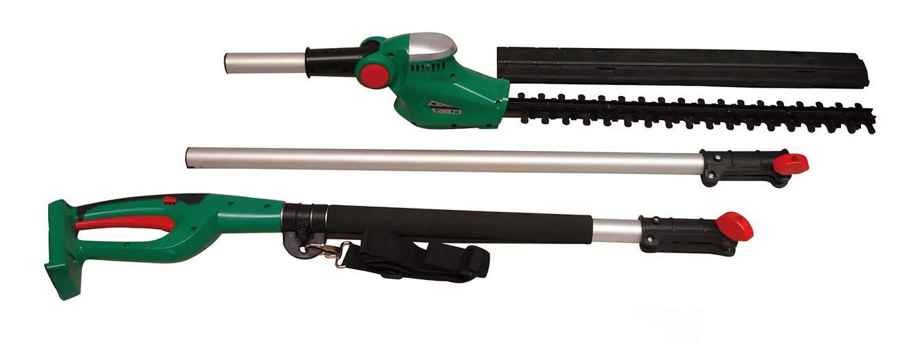 - Akumulátorové nůžky, určené k zastřihování/tvarování vzrostlých živých plotů ze země (-> max