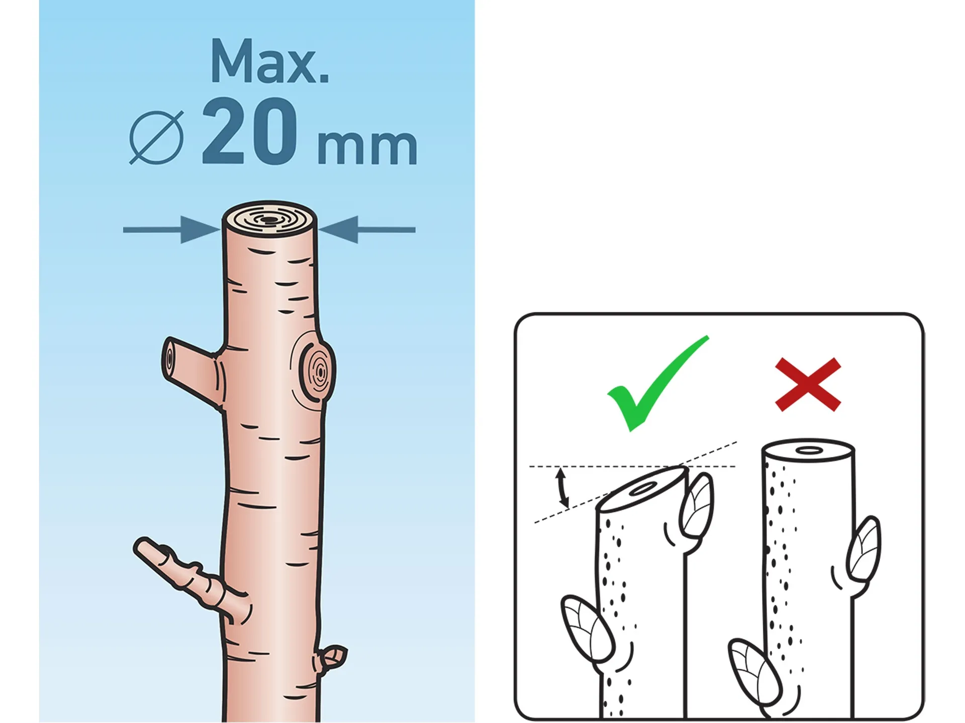 - Doplňující parametr: na stříhání větví do průměru 20mm