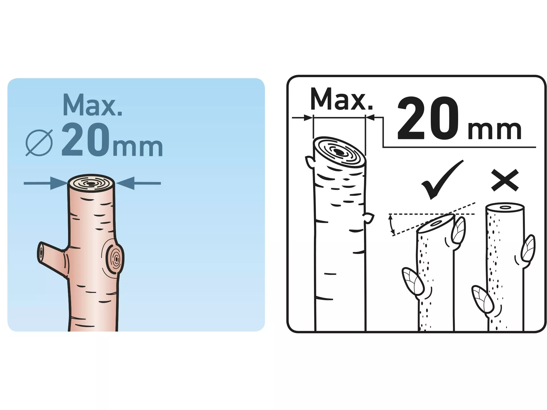 - Doplňující parametr: na stříhání větví do průměru 20mm