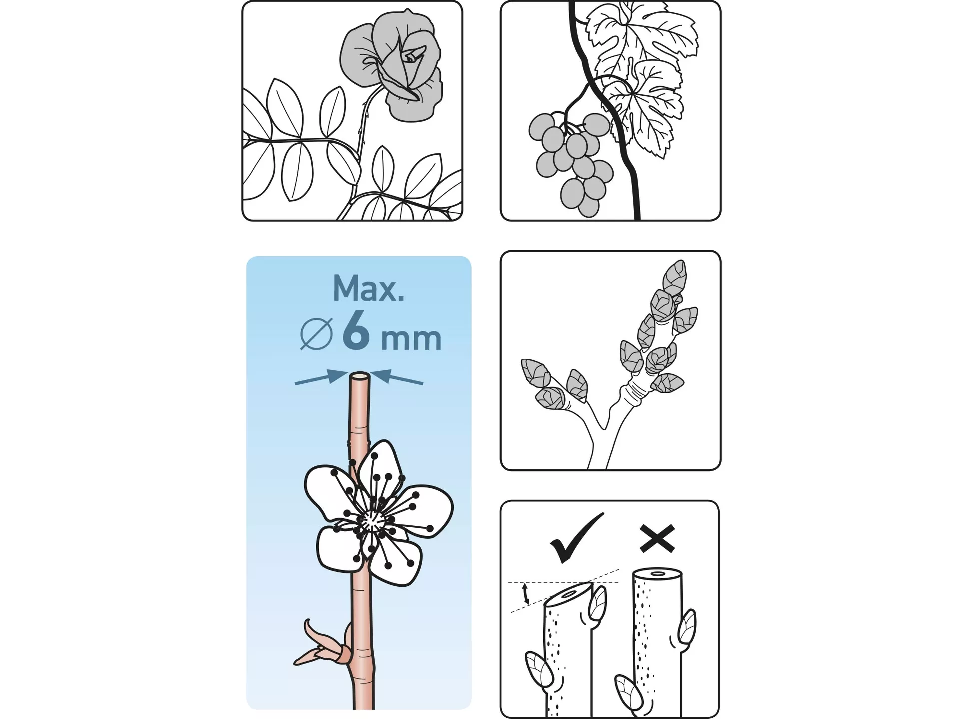 - Typ: ráčnové - vhodné na mladé větve
