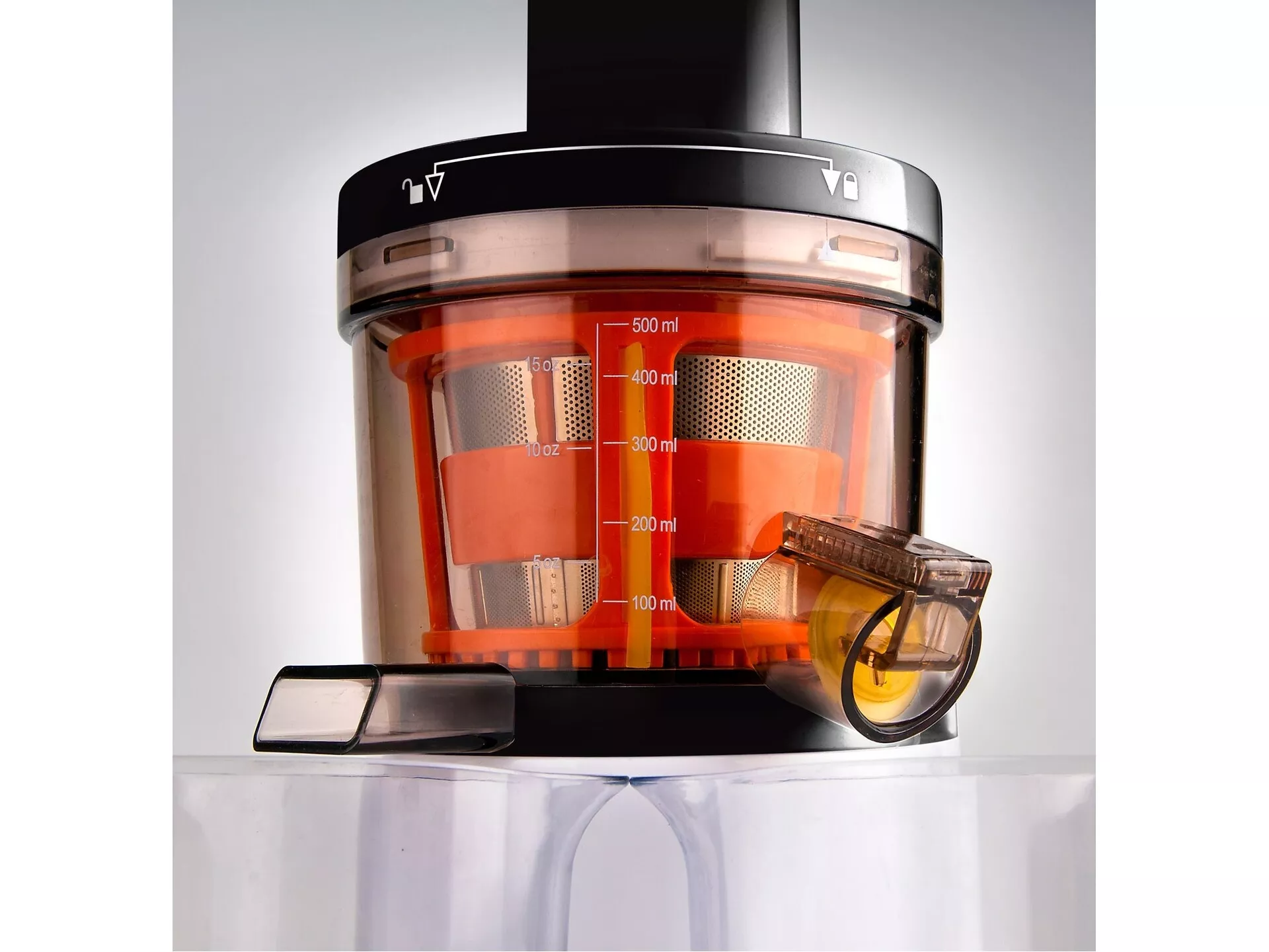 - Tento nízkootáčkový odšťavňovač patří mezi nejnovější generaci přístrojů, jenž využívají technologii dvoufázového, pomalého odšťavňování. V první fázi je ovoce a zelenina nadrcena a ve druhé fázi je nadrcená hmota prolisována.Tímto způsobem je dosaženo maximální využitelnosti zpracovaných surovin. Při pomalém zvyšování tlaku nedochází ke zvyšování teploty a proto vitamíny a minerály zůstanou uchovány ve šťávě. Nedochází k míchání se vzduchem a tím k procesu oxidace. Výsledná chuť i barva je lepší.Oproti odstředivým odšťavňovačům, méně zahřívá lisovanou směs, a tím zabraňuje znehodnocování vitamínů a zachovává přirozenou chuť čerstvého ovoce a zeleniny. Tento způsob zpracování je vysoce účinný a současně maximálně šetrný.Přístroj se dá snadno rozebrat a velmi jednoduše a rychle se čistí. Většinou stačí propláchnout pod tekoucí vodou, případně síto dočistit kartáčkem, který je součástí příslušenství.Nezanedbatelnou předností tohoto odšťavňovače je jeho velikost. Je nenáročný na prostor a místo si najde i v té nejmenší kuchyni.Příslušenství- pěchovadlo- nádoba na šťávu- nádoba na odpad- kartáček na čištění
