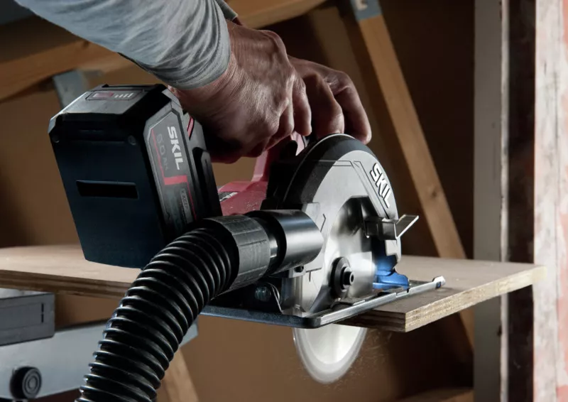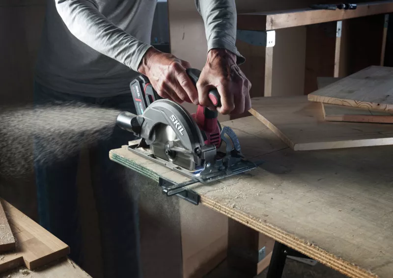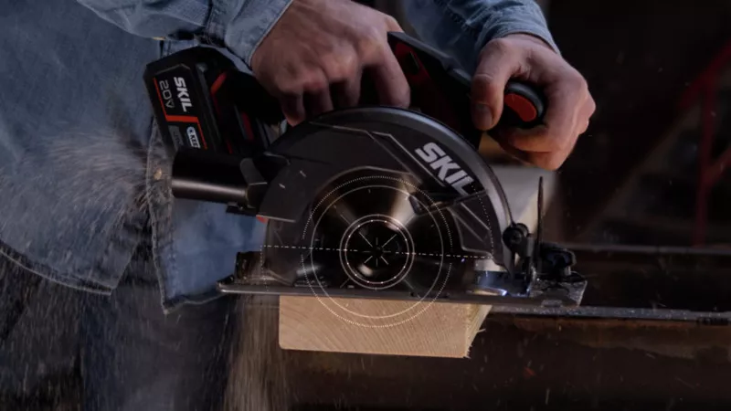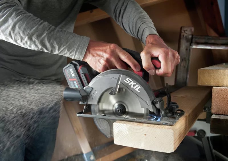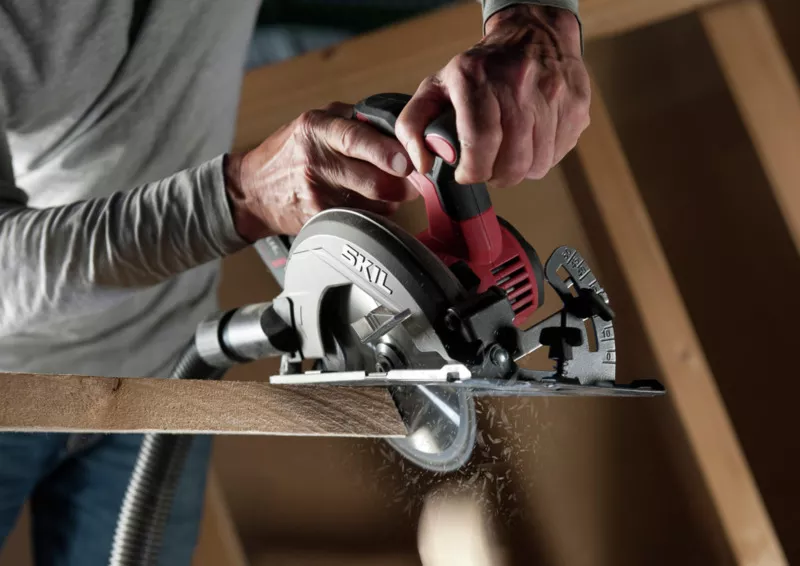 - Akumulátorová okružní pila „20V Max“ (18 V) SKIL 3550 je ideální na přesné řezání až do hloubky 61 mm.