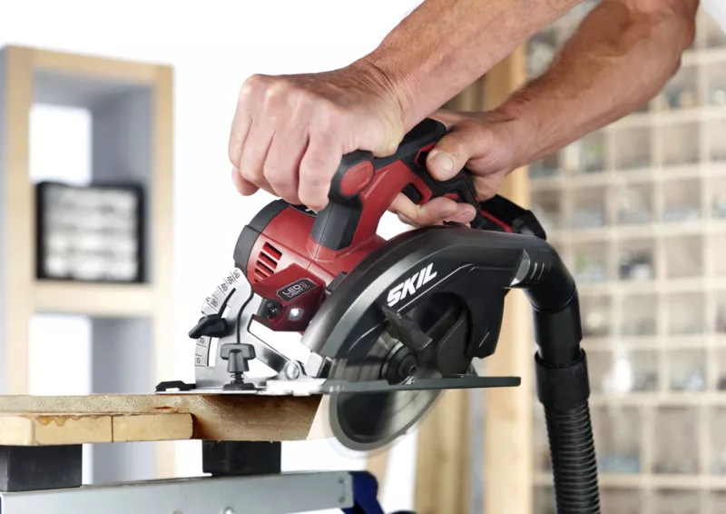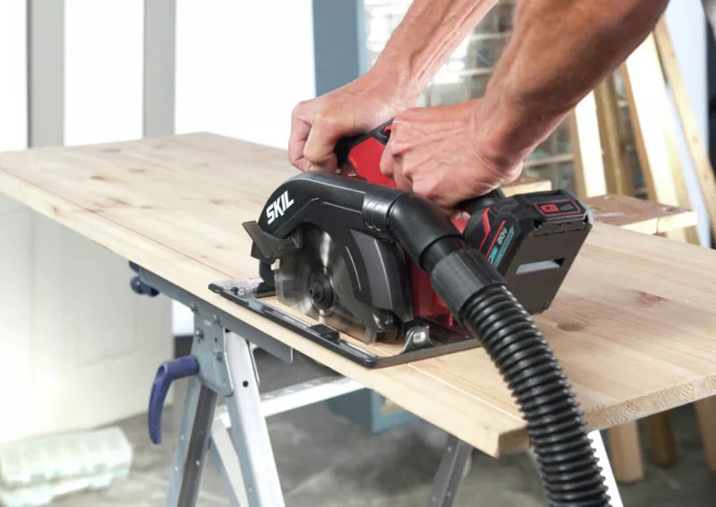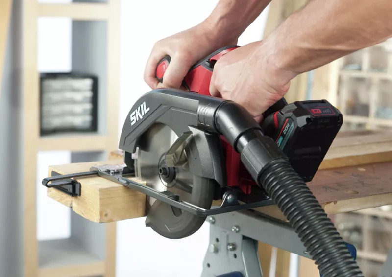 - Akumulátorová okružní pila „20V Max“ (18 V) SKIL 3520 je ideální na přesné řezání až do hloubky 54 mm.