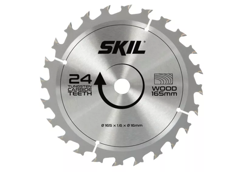 - Pilový kotouč s břitovými destičkami z tvrdokovu (24 zubů, Ø 165 mm, dřevo).