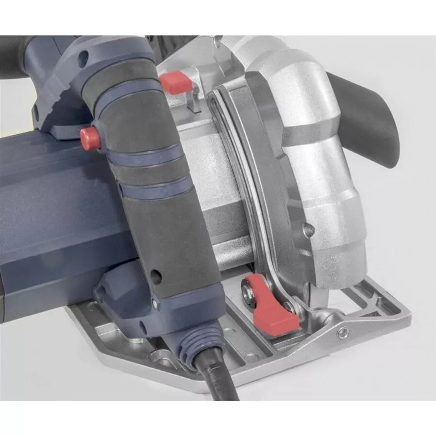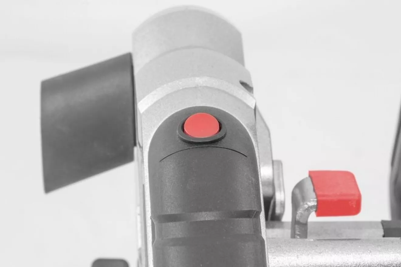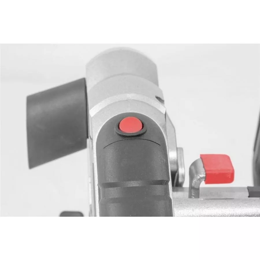 - Konstrukce: ergonomicky tvarované rukojeti s tlumicími vložkami a indikátorem napětí (-> LED dioda), ochranné kryty kotouče, laserový ukazatel, přípojka odsávání, podélný doraz