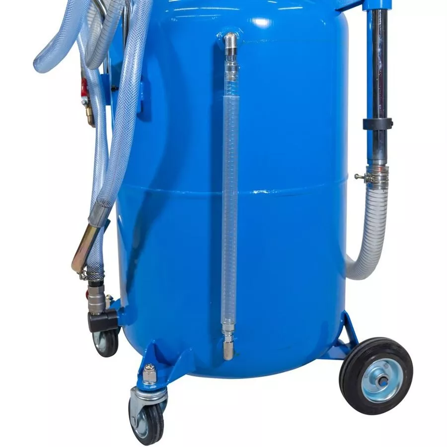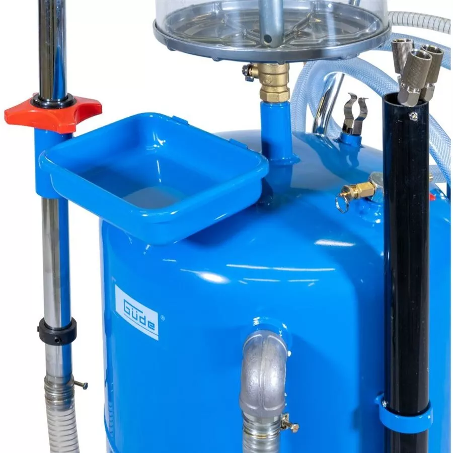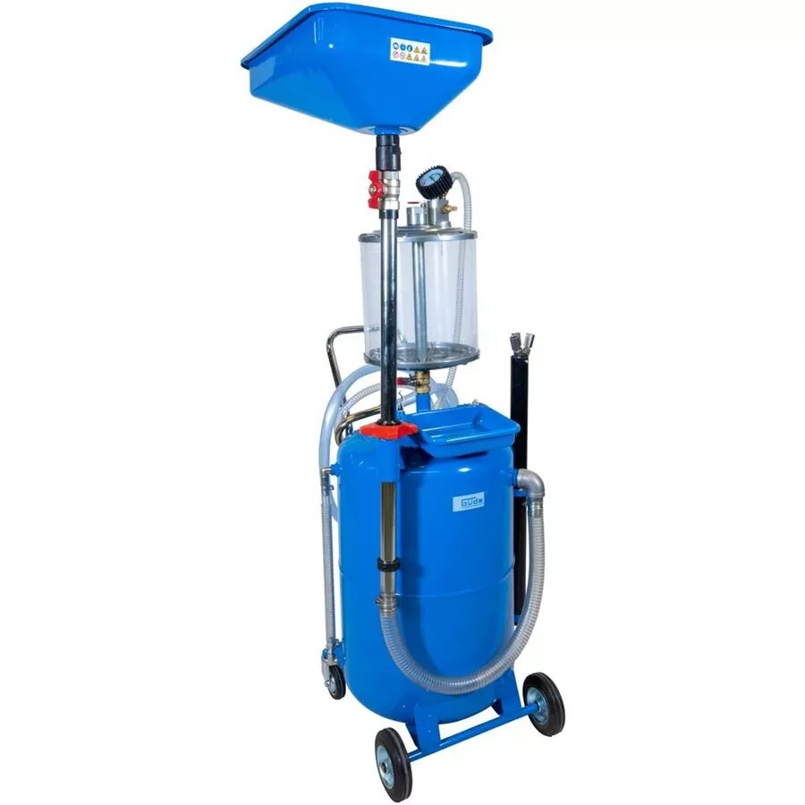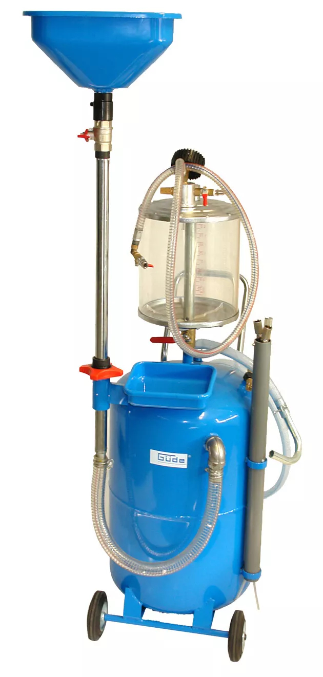 - Zachycování oleje do sběrné misky (-> pod zvednutým automobilem) nebo odčerpávání oleje do zásobníku/odměrného válce pomocí sondy (-> podtlakem).Konstrukce: sběrná miska, generátor podtlaku, manometr, 1,4 m odsávací hadice, plastový odměrný válec, zásobník na olej, pojezdová kola.Příslušenství: sondy pro odsávání oleje (-> 3, délka: 70 cm).