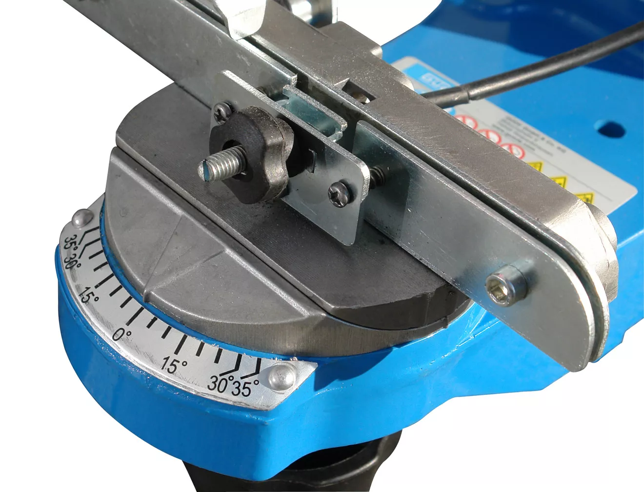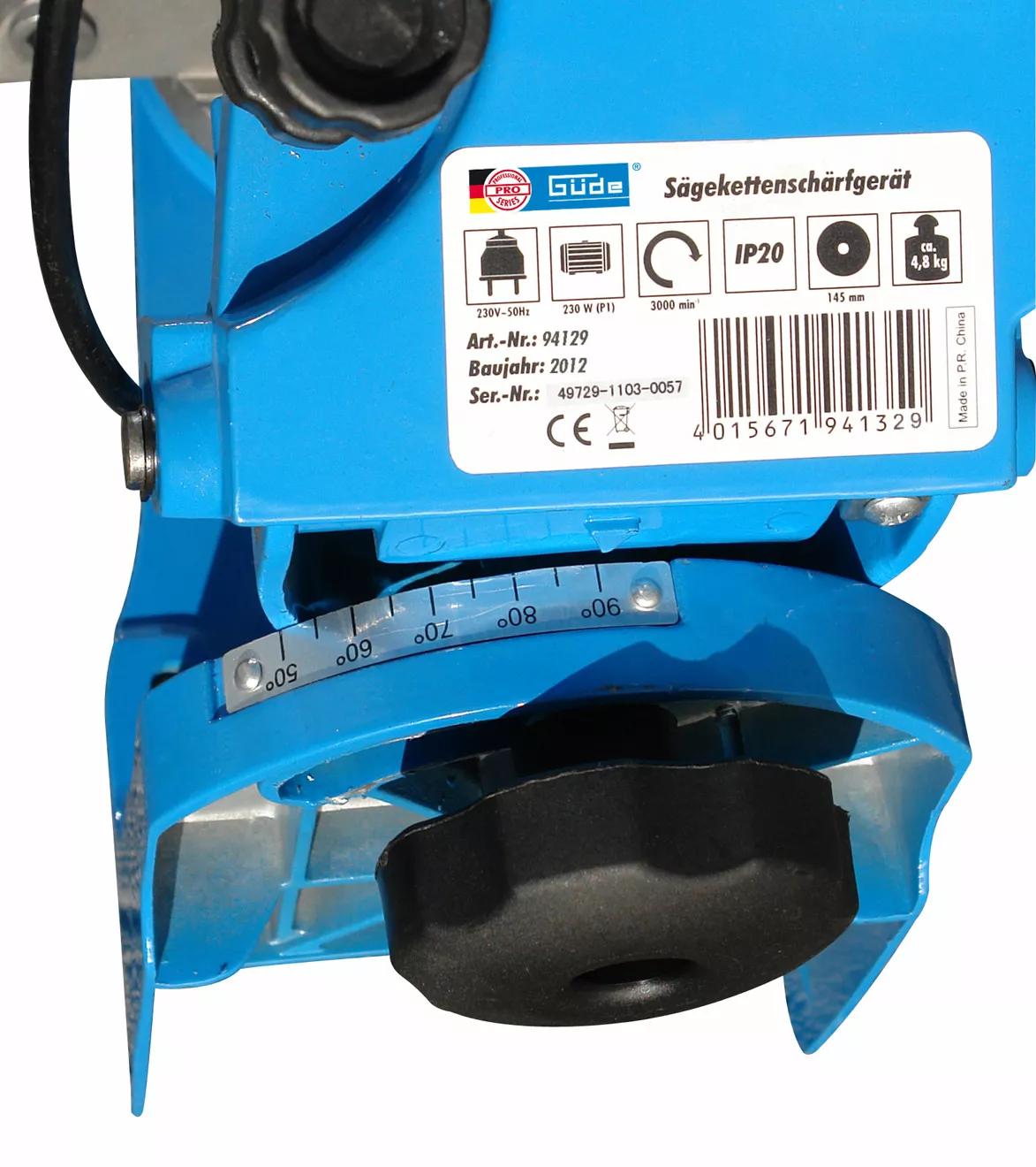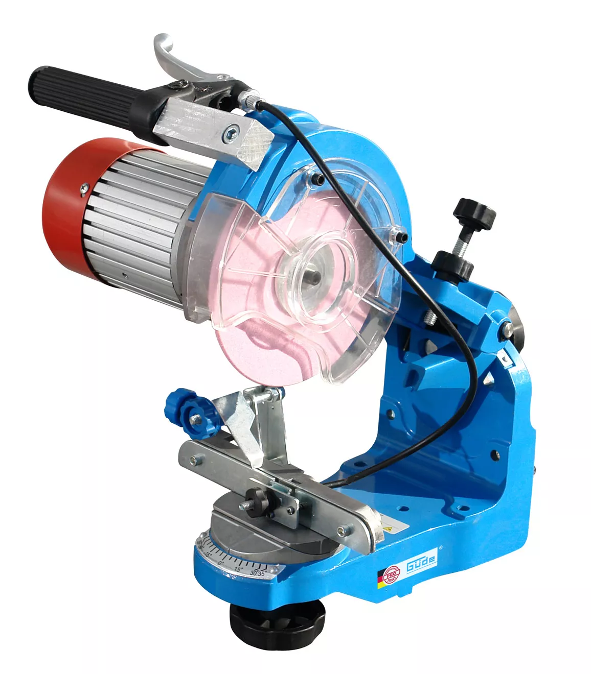 - Funkce: • oboustranné broušení všech článků řetězu díky naklápění brusného kotouče (90°-> 50°) a polohovatelnému upínacímu mechanizmu (35°/0°/35°; 10°/0°/10°) • rychloupínání řetězu stisknutím ovládací páčky • osvětlení ostřené plochy (-> vestavěná lampička 15 W).Motor 230 W/P1, vypínač v ochranném pouzdru, 1,5 m napájecí kabel H05 VV-F