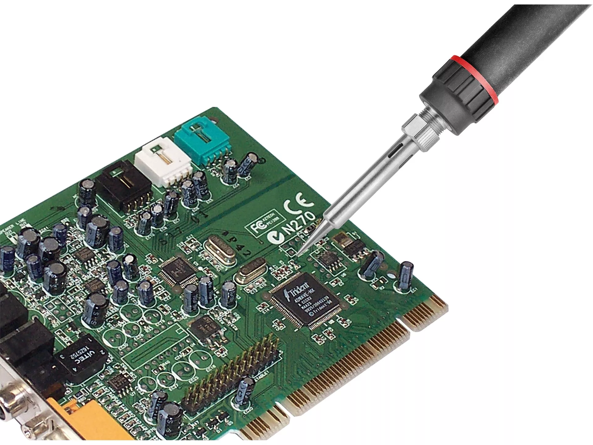- Hrotová pájka je určena k měkkému pájení, které vyžaduje přesnost a kontrolu teploty hrotu, zejména v elektronice a v bižuterii. S použitím vhodného pájecího hrotu lze pájku použít také k drobnému řezání či spojování plastů a také k vypalování symbolů do dřeva. S pájkou se používají standardní hroty typu 900M. Hrot pájky je nahříván keramickým tělesem s vnitřním topícím prvkem. Teplotní čidlo potom zajišťuje zpětnovazební kontrolu a pájka udržuje nastavenou teplotu při pájení. Pomocí regulačního kolečka nastavíte teplotu v rozsahu 100–480°C. Pájka je vybavena funkcí kalibrace teploty hrotu, kdy můžete kalibrovat teplotu hrotu vzhledem k jeho velikosti. Má také ESD ochranu proti výboji statické elektřiny. Plastový přechod mezi kovovou a plastovou částí je vyroben ze speciálního vysoce tepelně odolného plastu a ručka je potažená silikonem pro příjemné držení při práci. Součástí balení je jednoduchý stojánek pro odložení pájky.