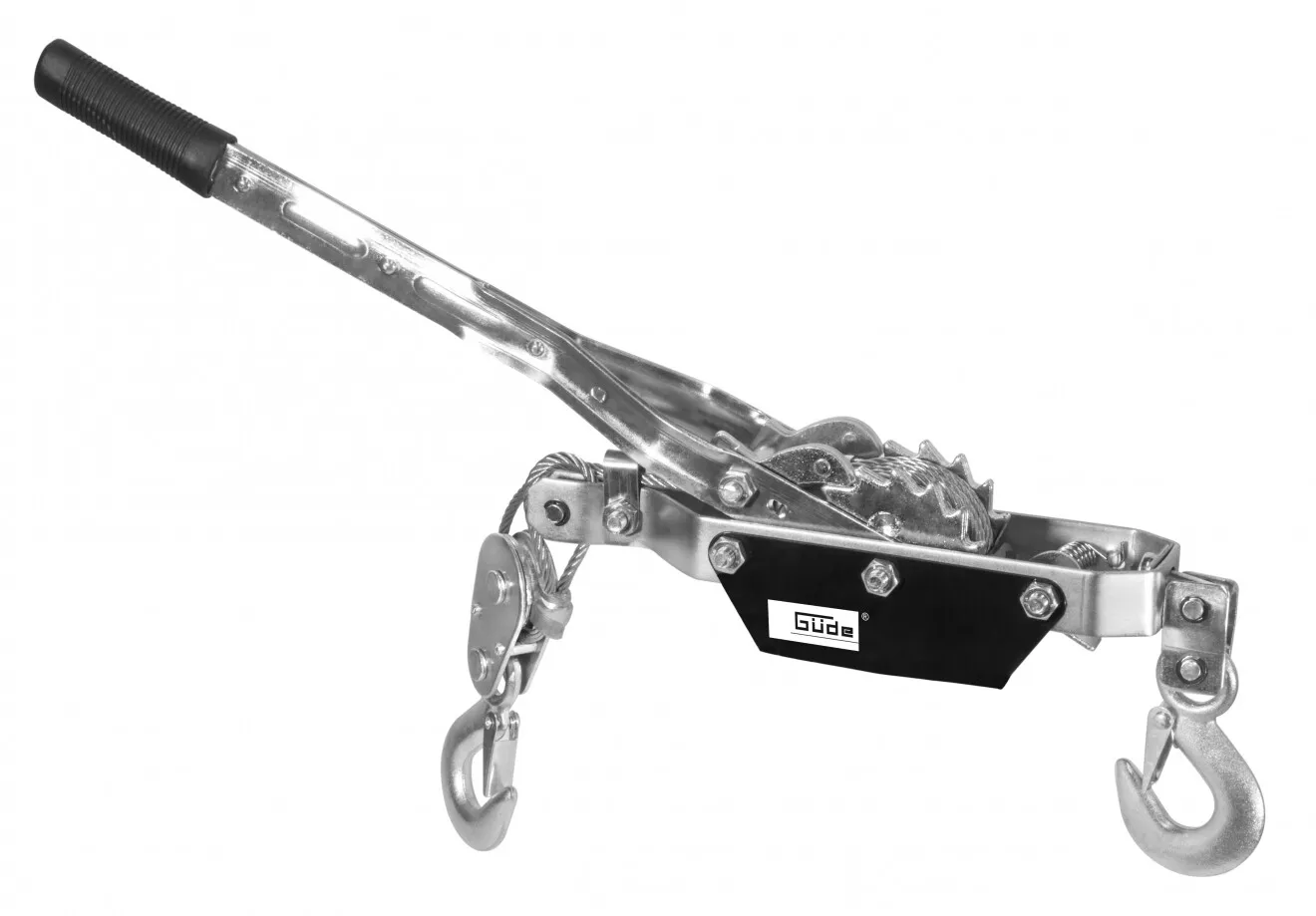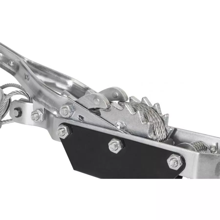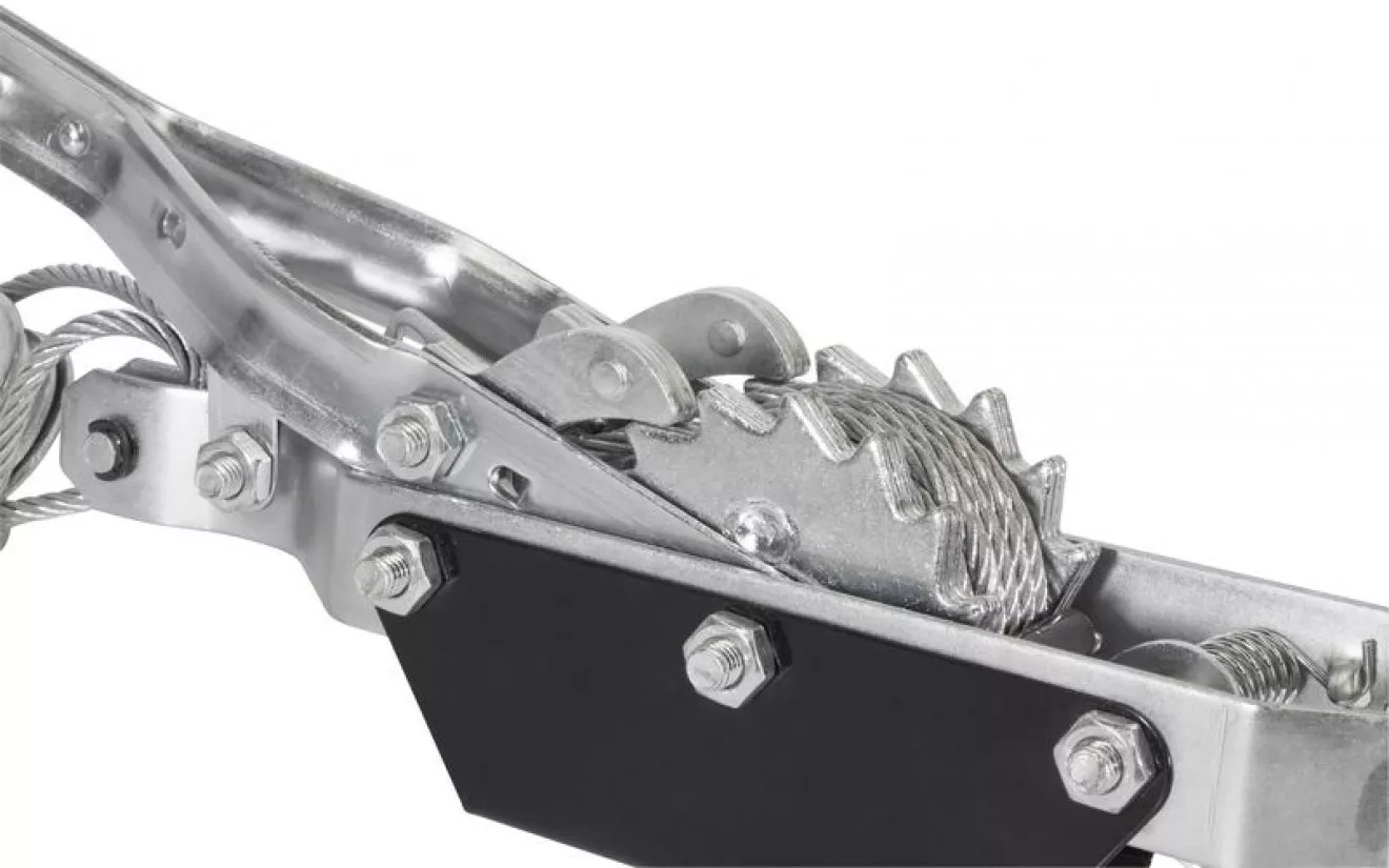 - Konstrukce: pozinkovaný ocelový rám, lanová kladka, ruční páka s gumovou rukojetí