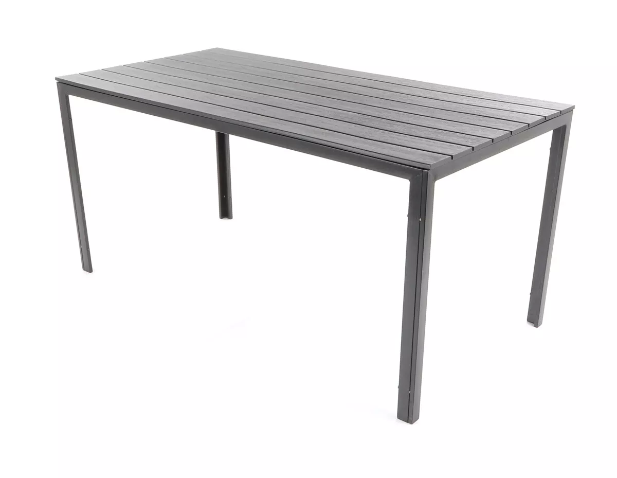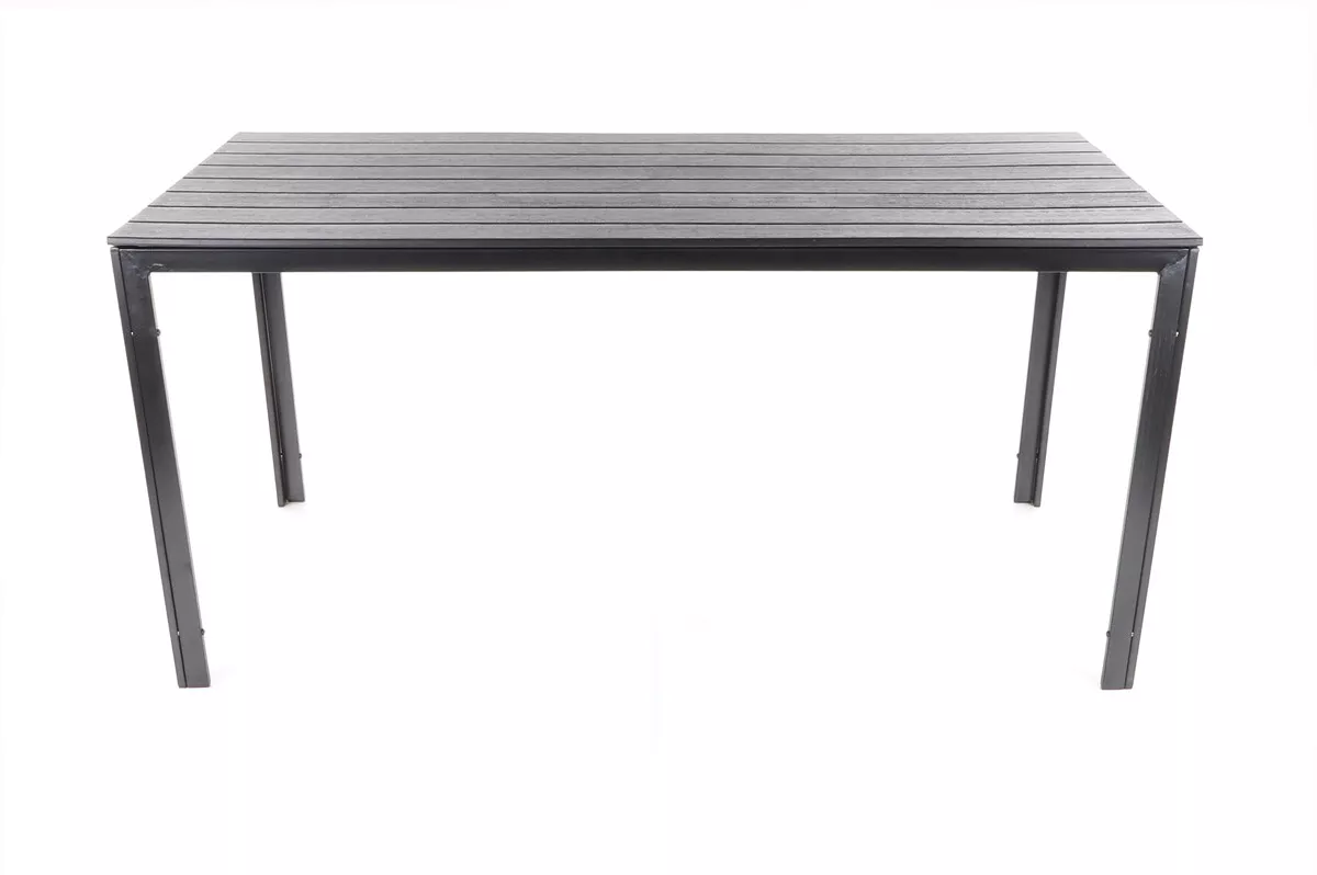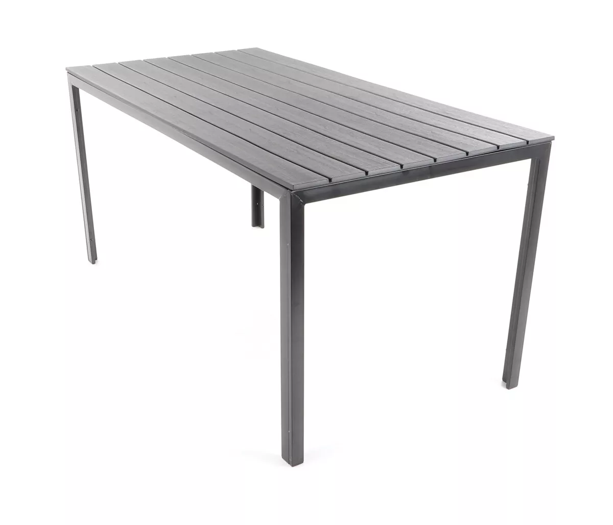 - Stůl je zhotoven z ocelových profilů povrchově dokončen komaxitovou barvou . Deska stolu je v imitaci masivního dřeva z lisovaného plastu s UV filtrem .