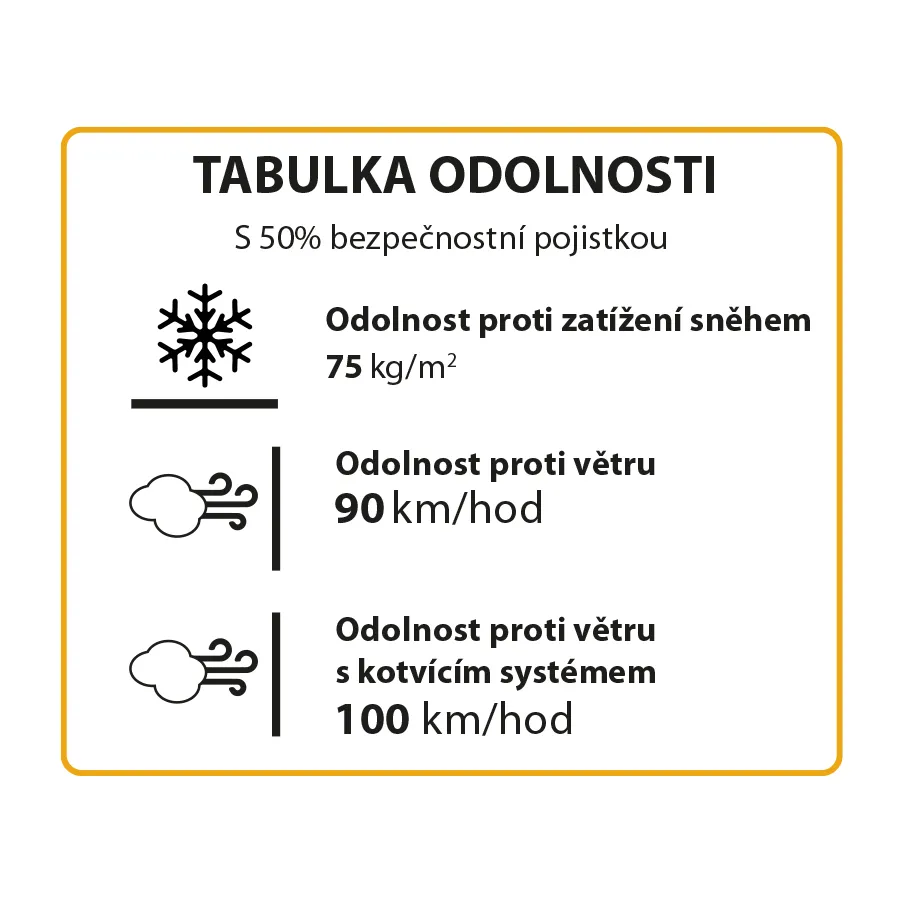 - • Špičková konstrukce i materiály odolné proti větru, sněhu i kroupám