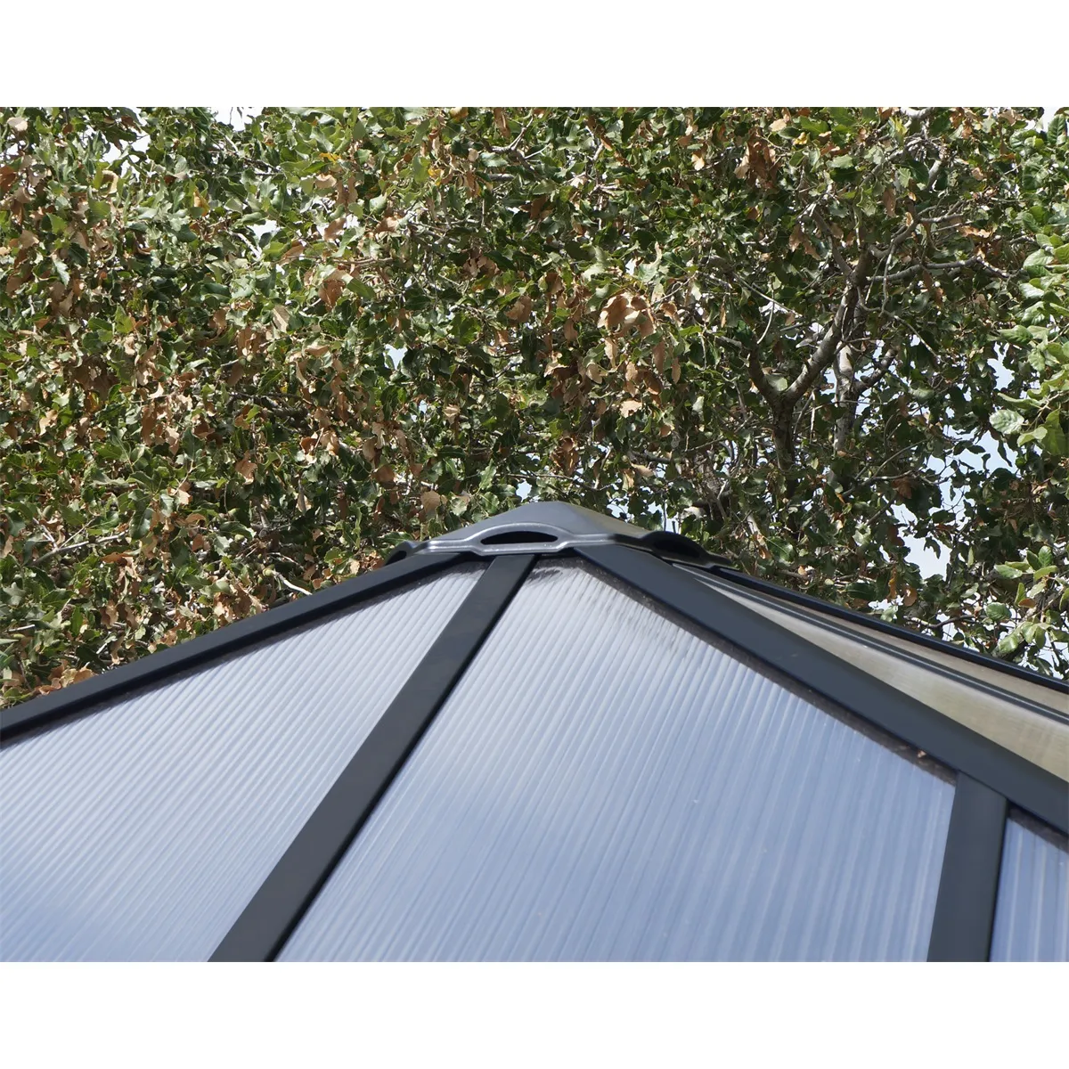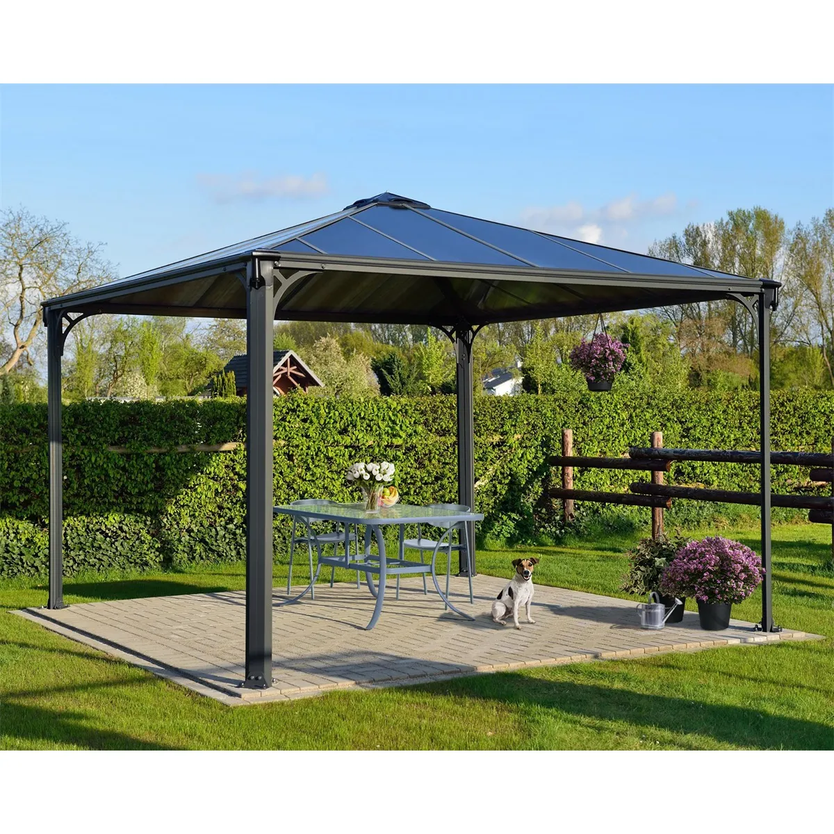 - • Elegantní šedý odstín střechy a antracitová barva rámu skvěle zapadnou do prostředí vaší zahrady