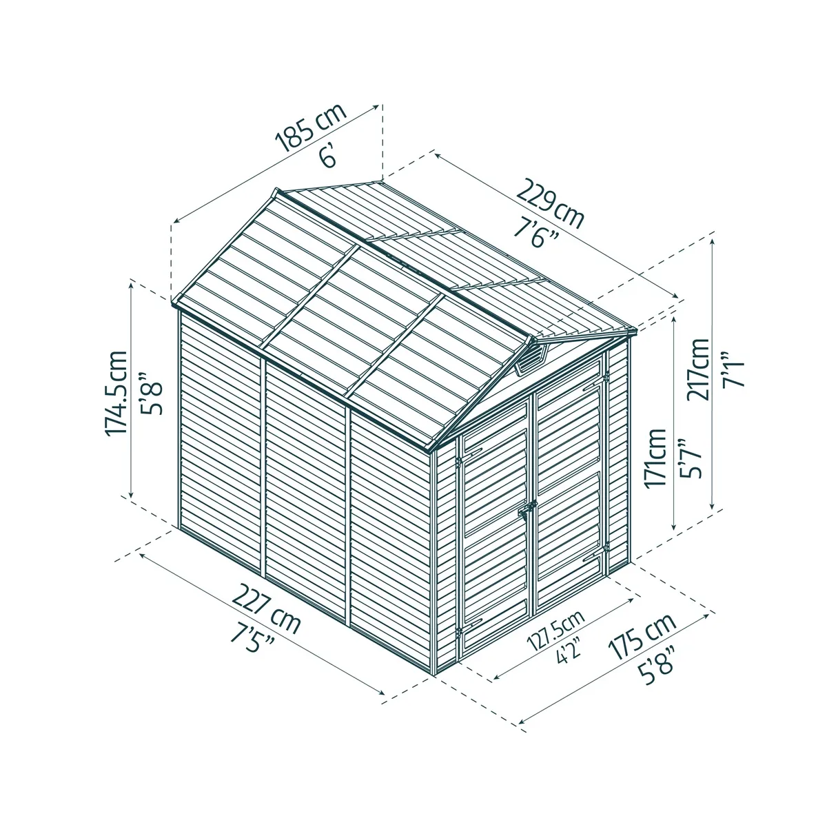 - Rozměry domku (D x Š x V): 230,5 x 185,3 x 217 cm