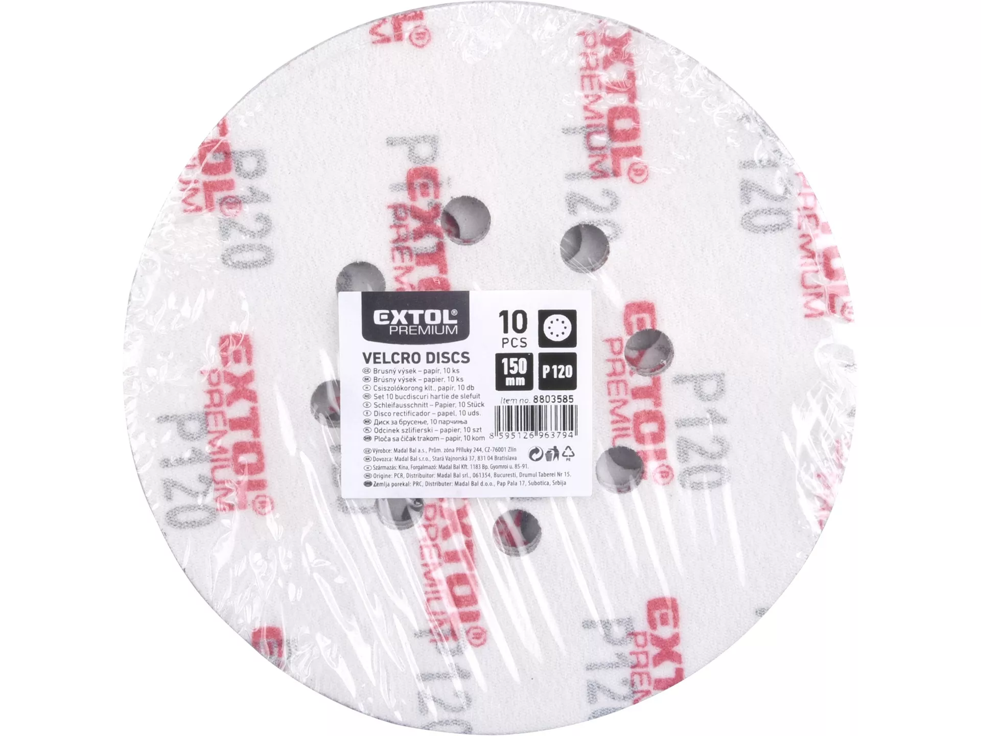 Papíry brusné výsek, suchý zip, bal. 10ks, 150mm, p120 EXTOL PREMIUM 8803585
