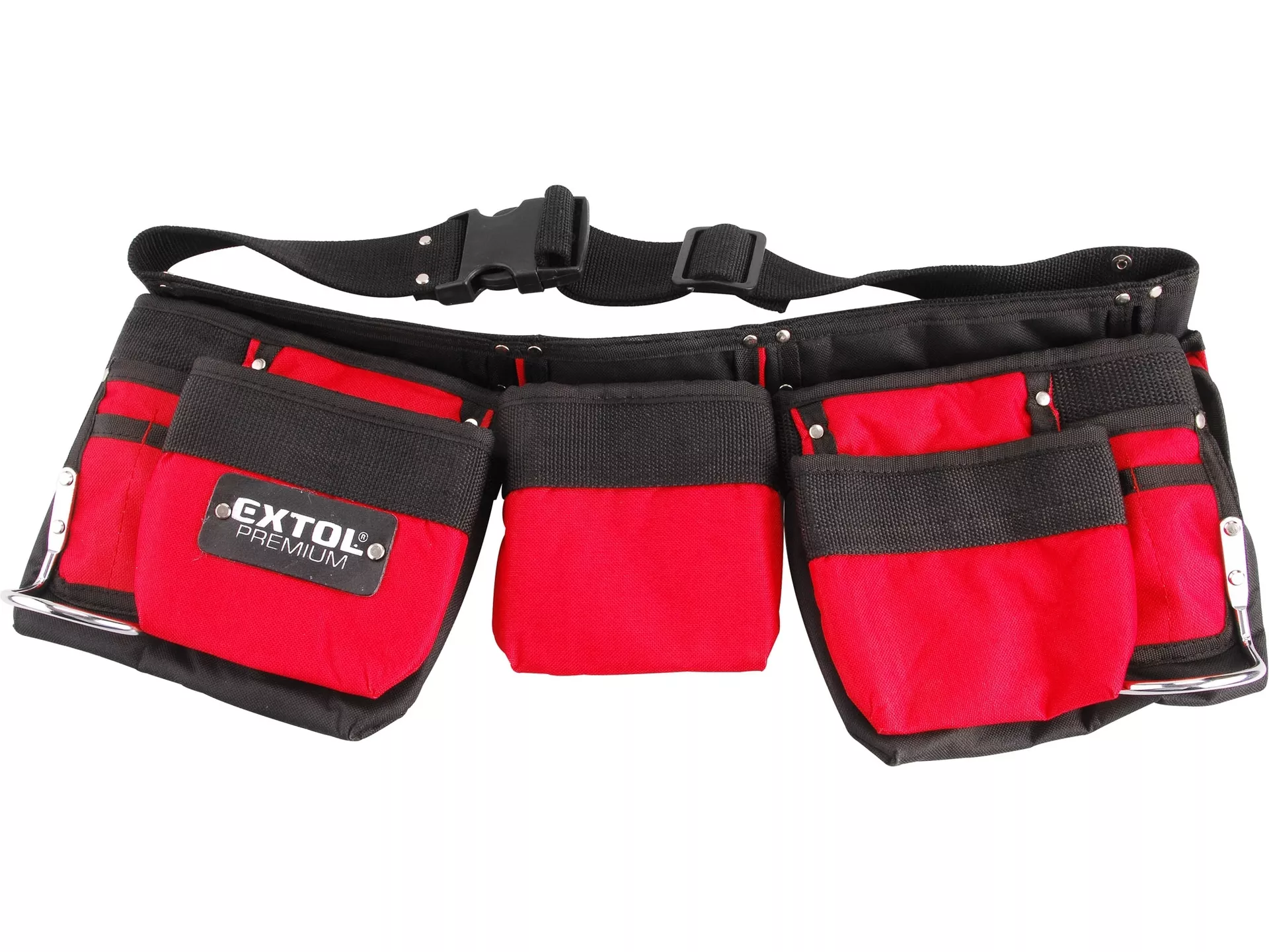 - Doplňující parametr: (2 velké, 3 střední, 2 malé), držák na kladivo, úchyty pro tužku nebo šroubovák, materiál nylon spojený extra silnými nýty, opasek s plastovou rychloupínací přezkou