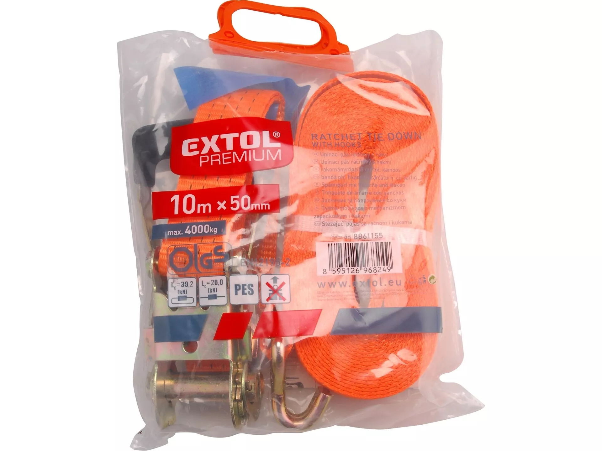 Pás upínací ráčnový s háky, 10m x 50mm, max. 4000kg EXTOL PREMIUM 8861155