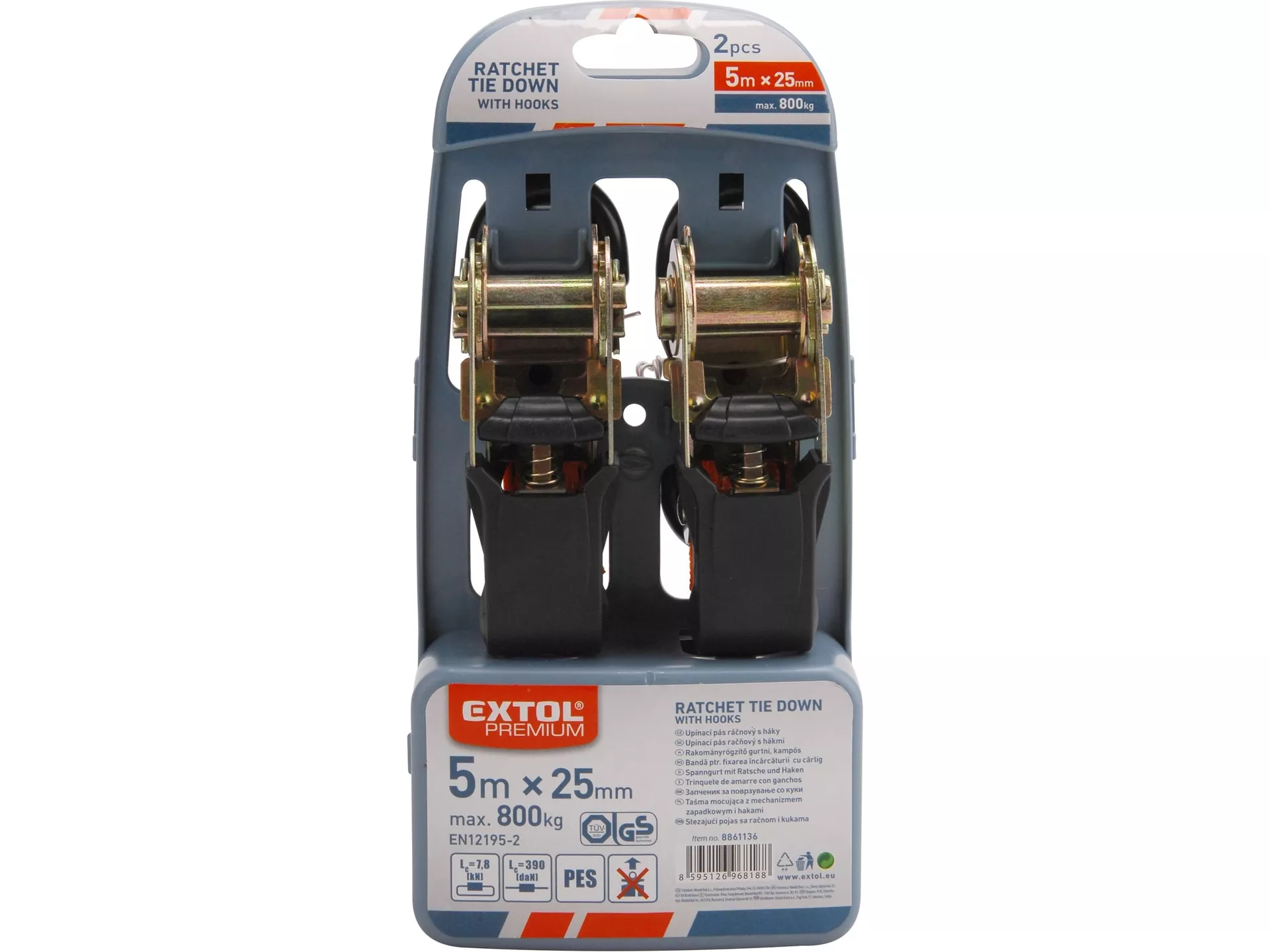 Pás upínací ráčnový s háky, 5m x 25mm, sada 2ks, max. 800kg EXTOL PREMIUM 8861136