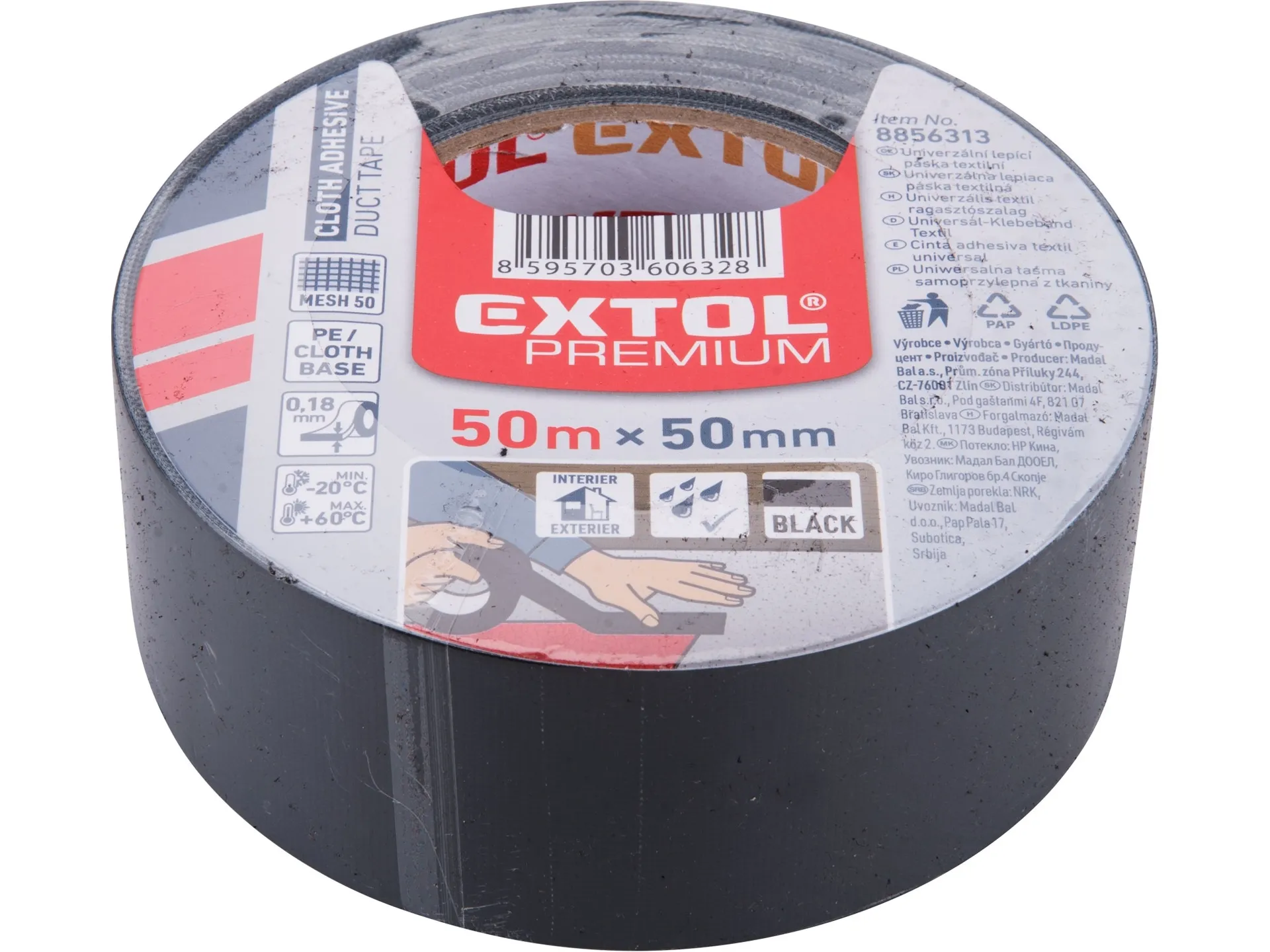 Páska lepicí textilní/univerzální, 50mm x 50m tl.0,18mm, černá EXTOL PREMIUM 8856313