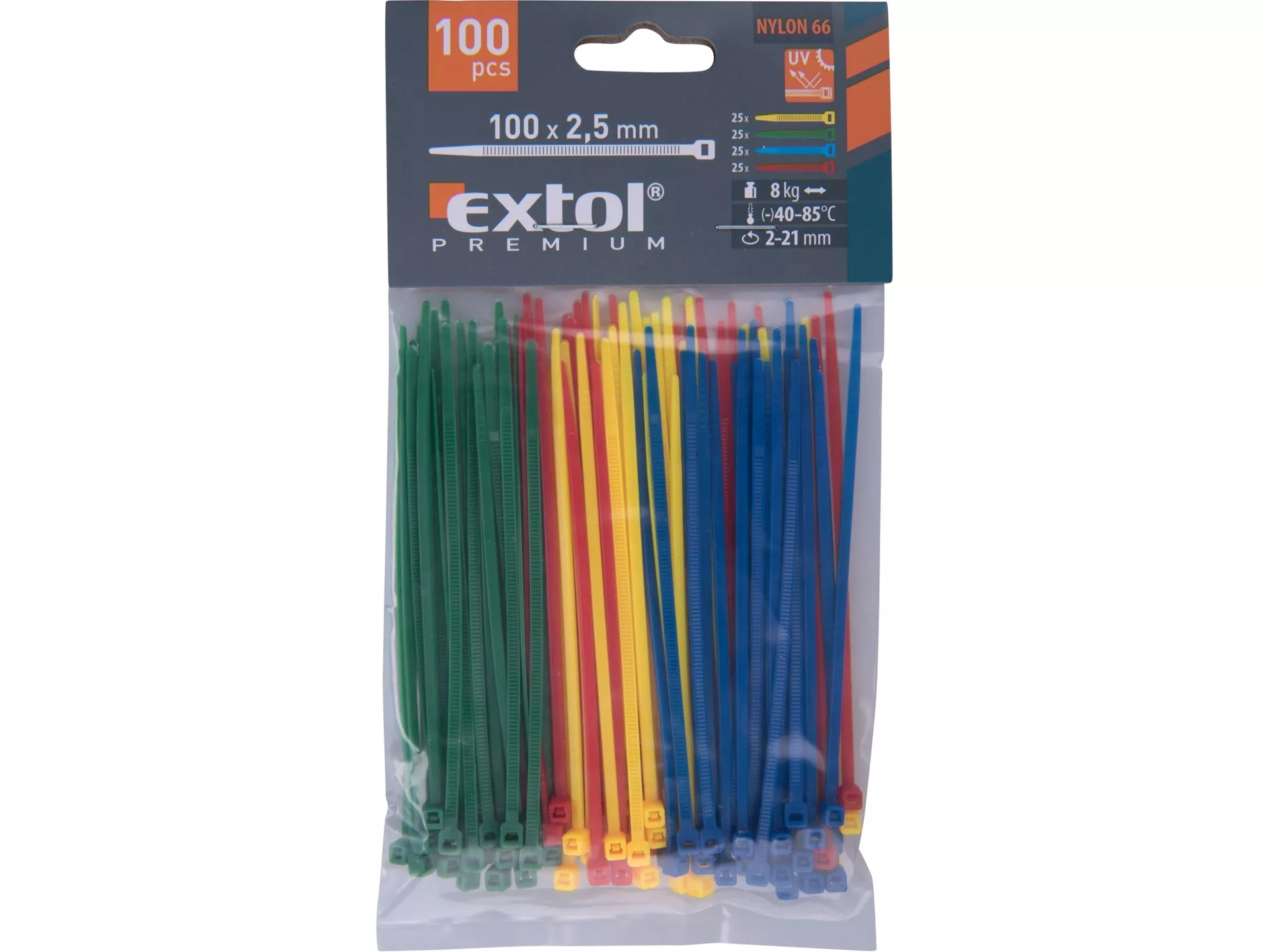 Pásky stahovací barevné, 100x2,5mm, 100ks, (4x25ks), 4 barvy, nylon pa66 EXTOL PREMIUM 8856192