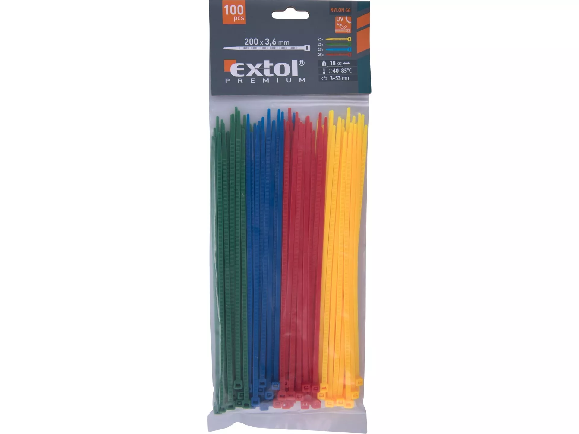 Pásky stahovací barevné, 200x3,6mm, 100ks, (4x25ks), 4 barvy, nylon pa66 EXTOL PREMIUM 8856196