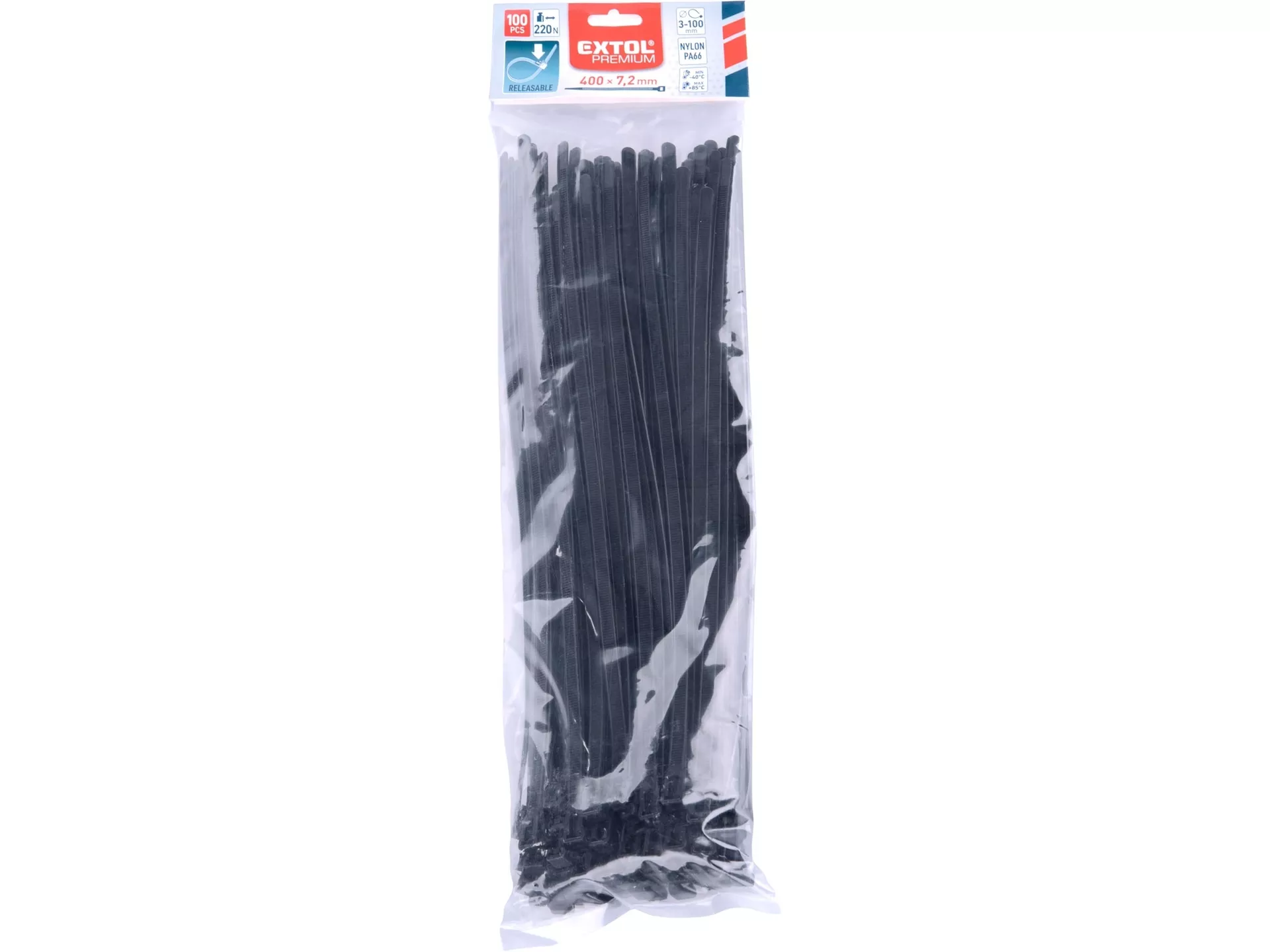 Pásky stahovací černé, rozpojitelné, 400x7,2mm, 100ks, nylon pa66 EXTOL PREMIUM 8856261