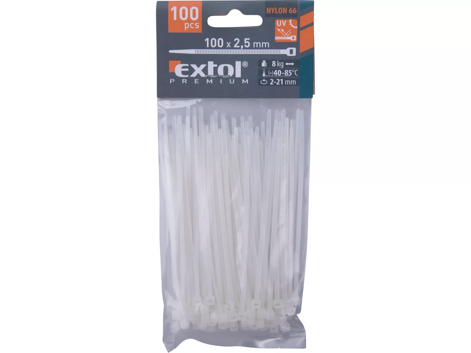 Pásky stahovací na kabely bílé, 100x2,5mm, 100ks, nylon pa66 EXTOL PREMIUM 8856102