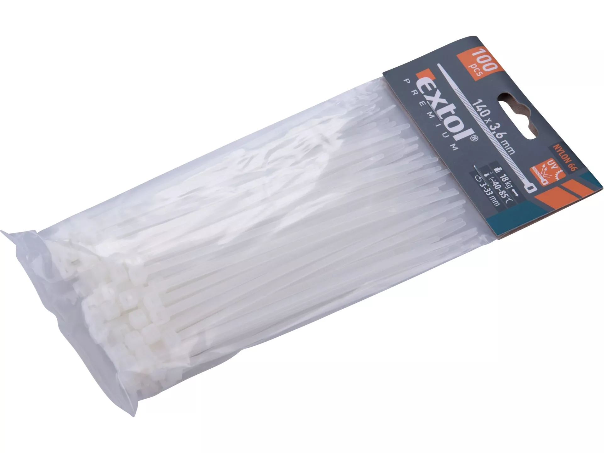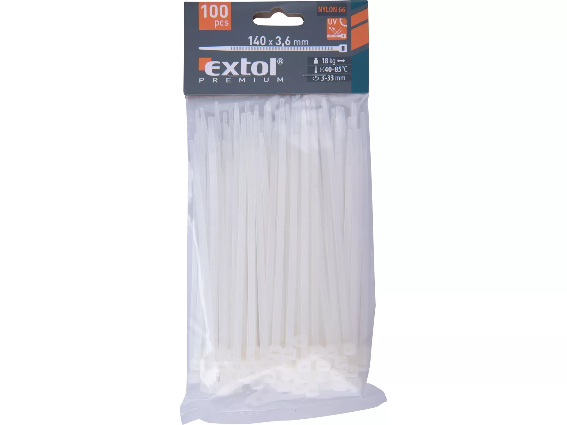 Pásky stahovací na kabely bílé, 140x3,6mm, 100ks, nylon pa66 EXTOL PREMIUM 8856105
