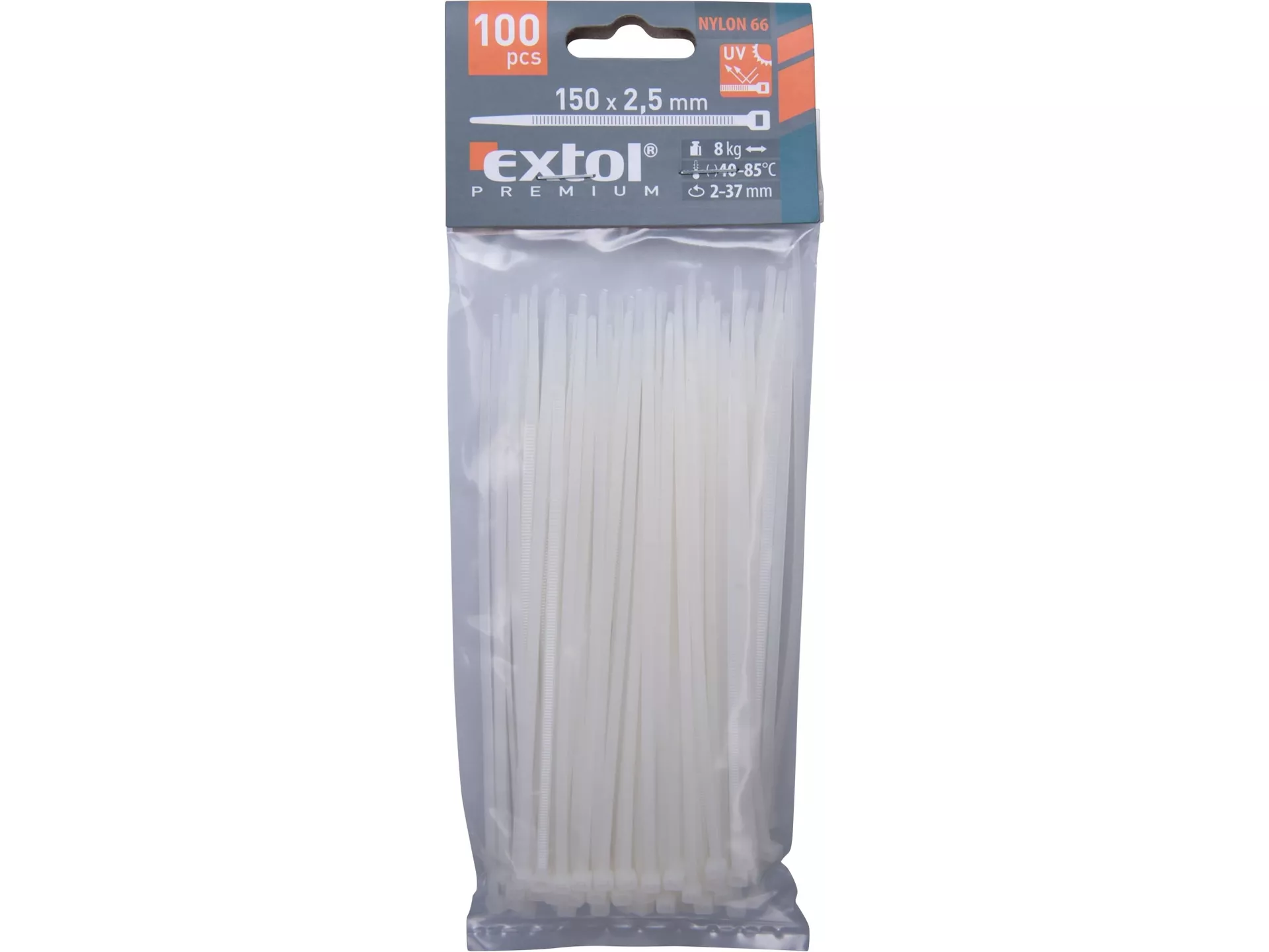 Pásky stahovací na kabely bílé, 150x2,5mm, 100ks, nylon pa66 EXTOL PREMIUM 8856104