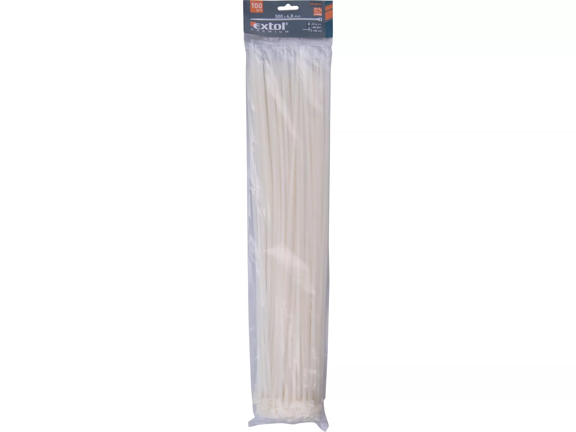Pásky stahovací na kabely bílé, 500x4,8mm, 100ks, nylon pa66 EXTOL PREMIUM 8856118