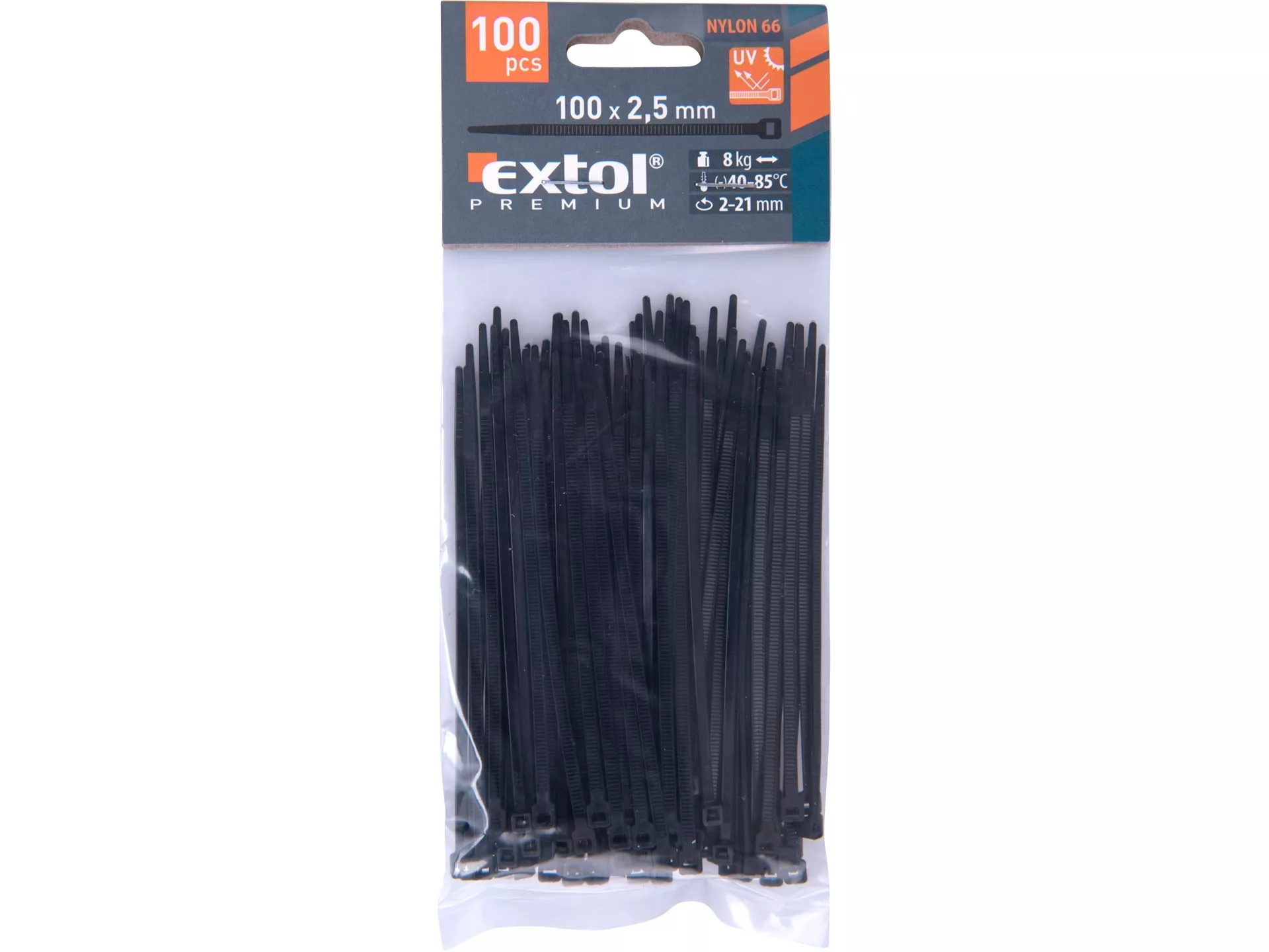 Pásky stahovací na kabely černé, 100x2,5mm, 100ks, nylon pa66 EXTOL PREMIUM 8856152