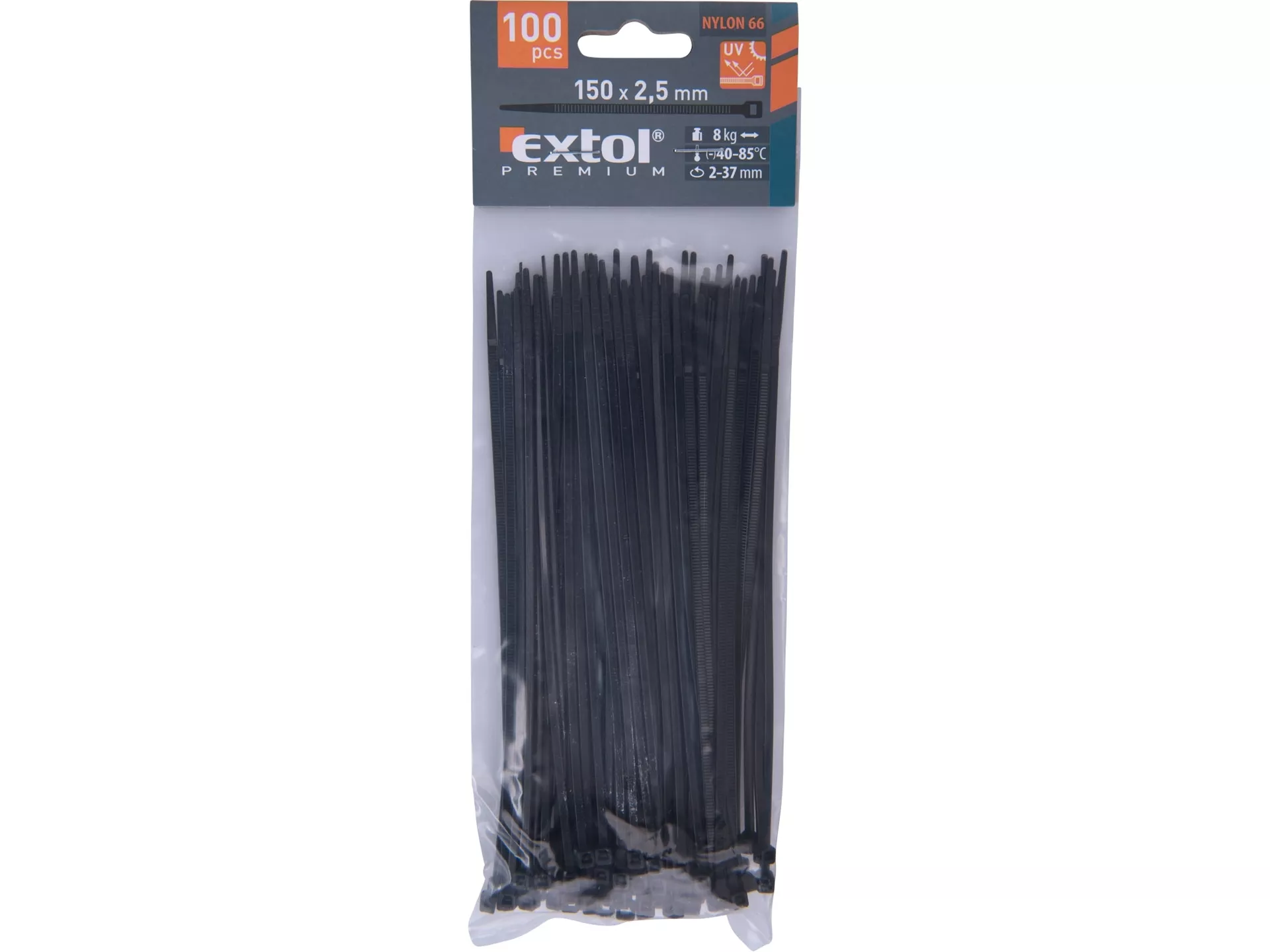 Pásky stahovací na kabely černé, 150x2,5mm, 100ks, nylon pa66 EXTOL PREMIUM 8856154