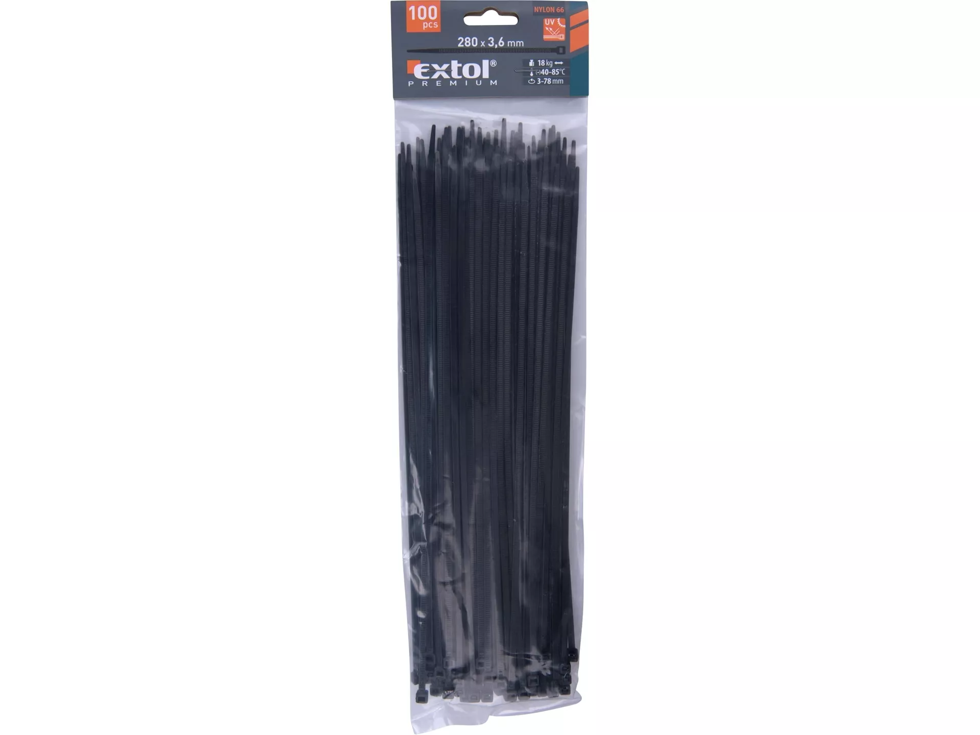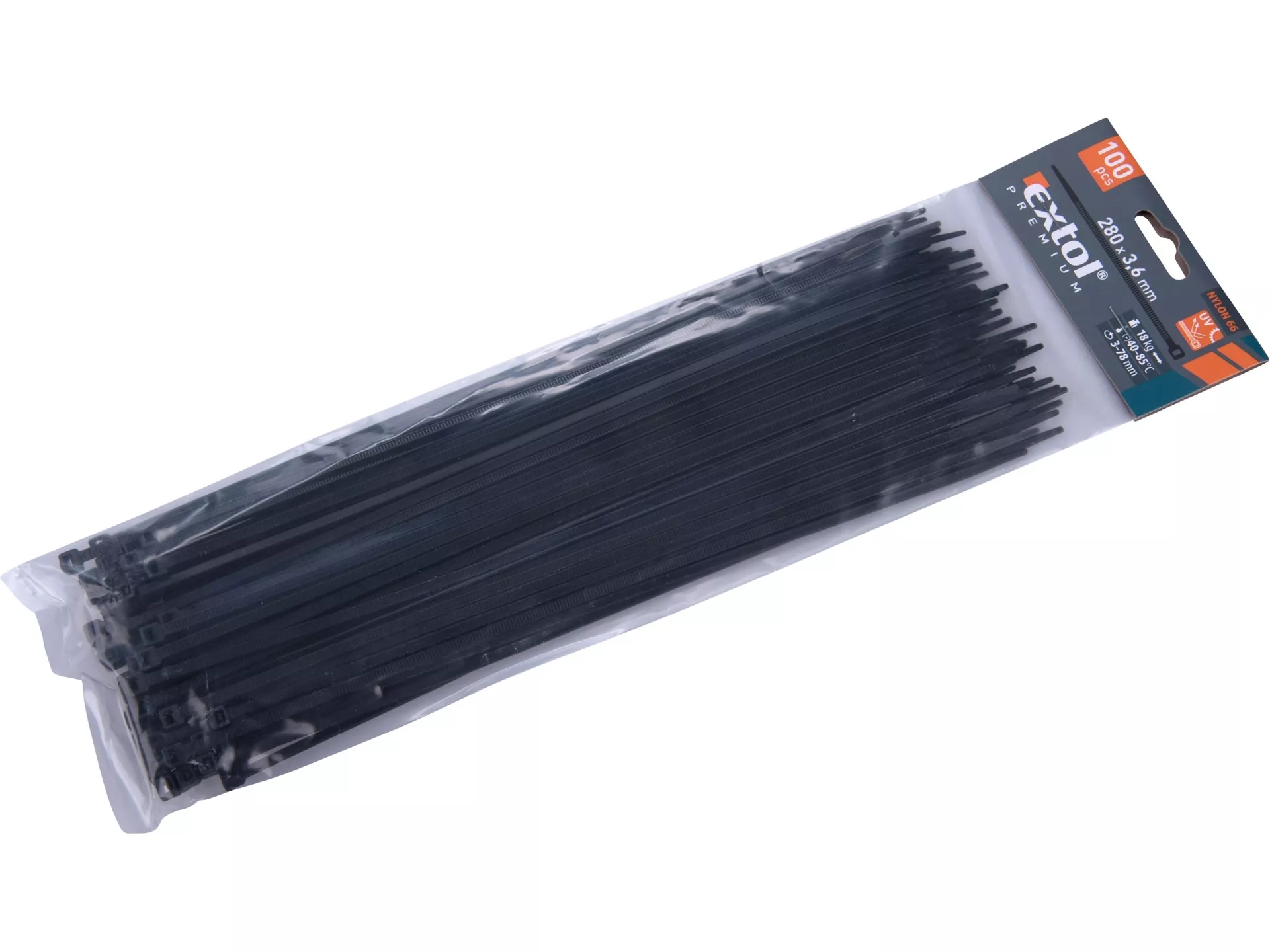 Pásky stahovací na kabely černé, 280x3,6mm, 100ks, nylon pa66 EXTOL PREMIUM 8856158