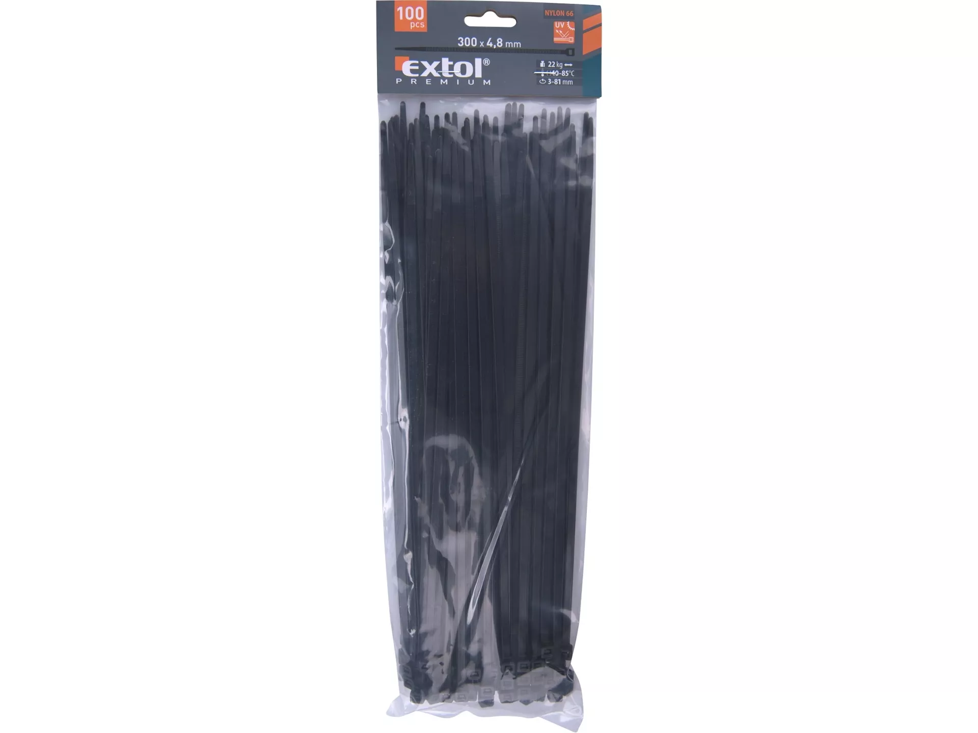 Pásky stahovací na kabely černé, 300x4,8mm, 100ks, nylon pa66 EXTOL PREMIUM 8856162