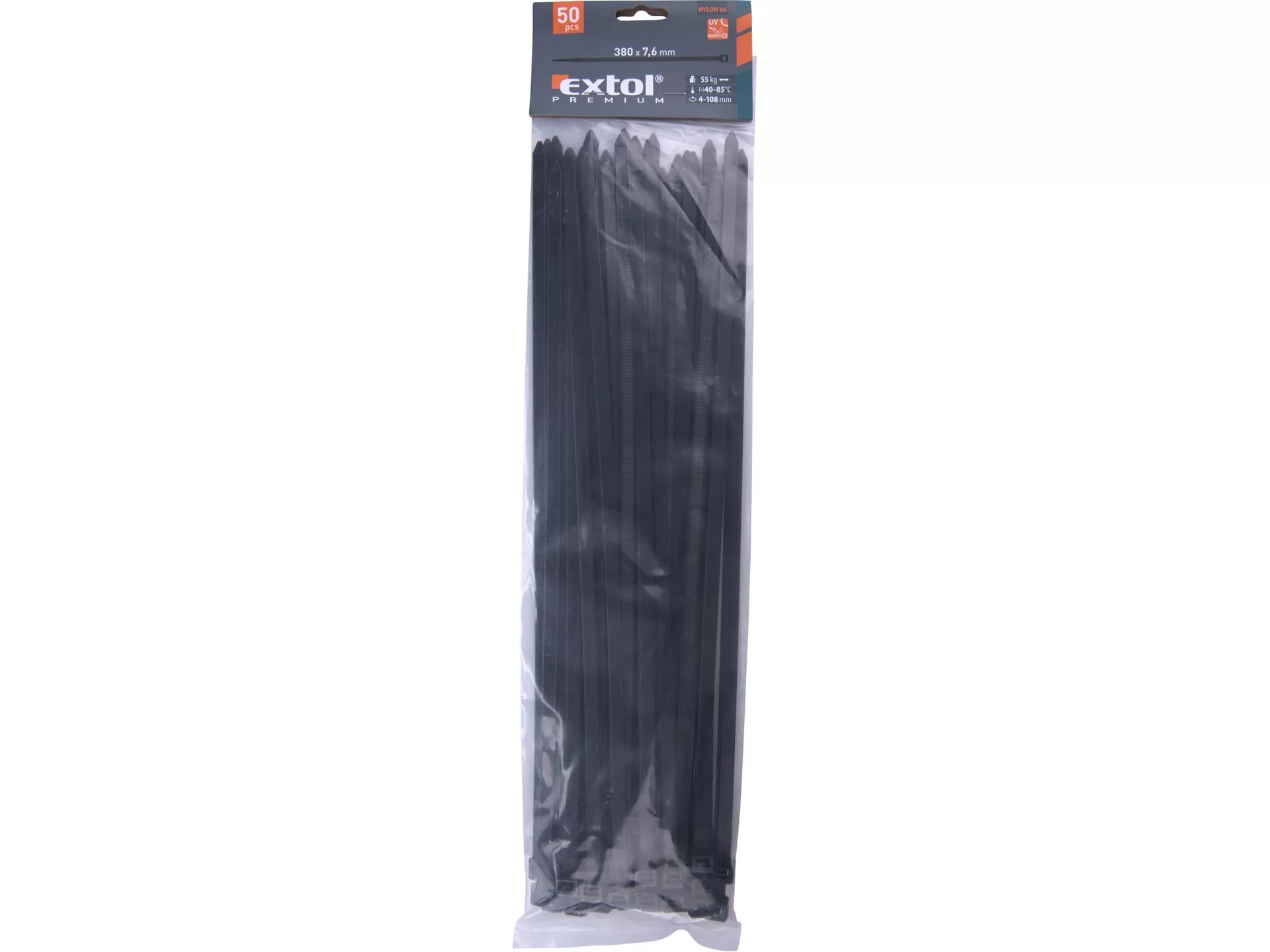 Pásky stahovací na kabely černé, 380x7,6mm, 50ks, nylon pa66 EXTOL PREMIUM 8856170