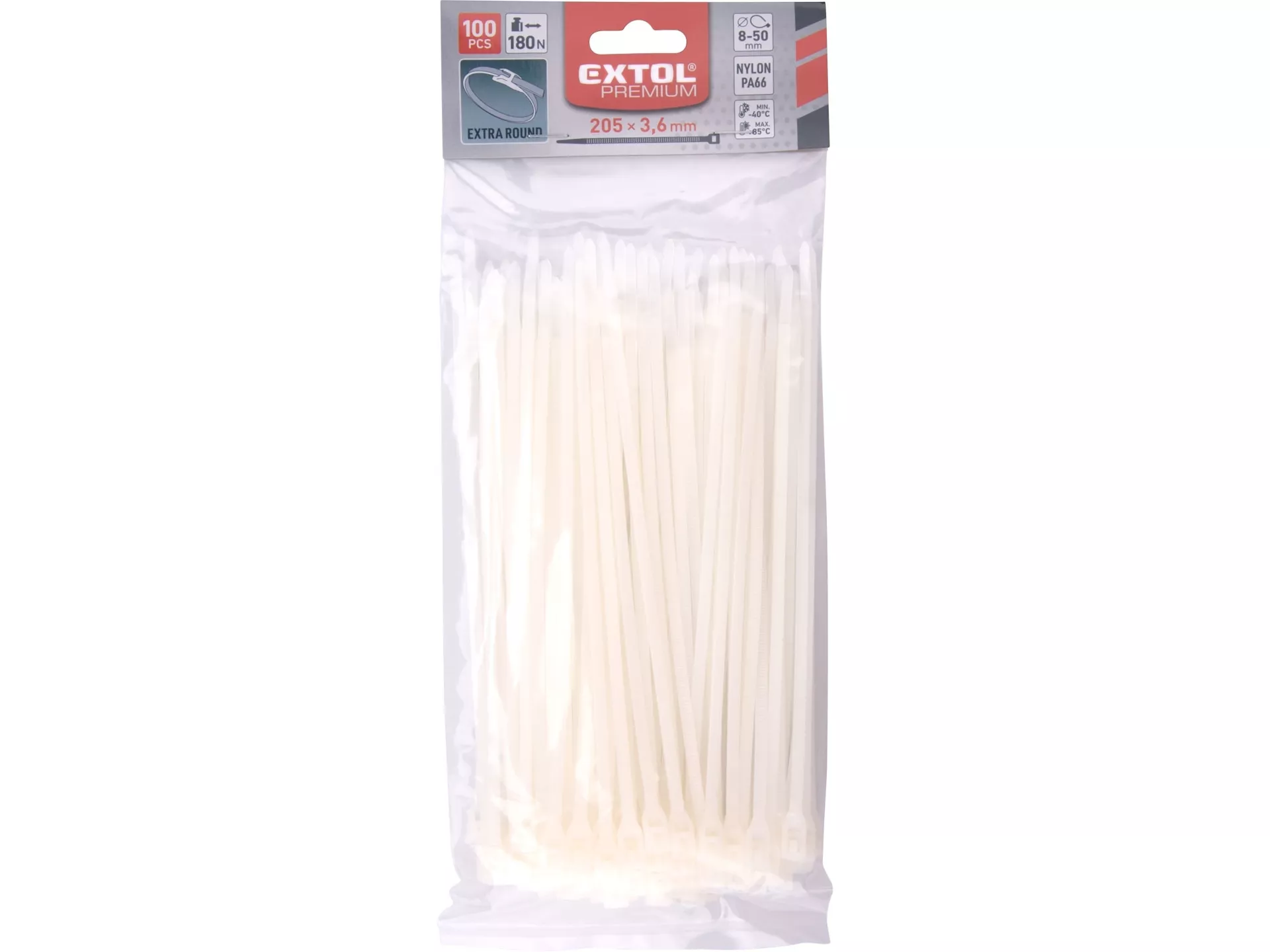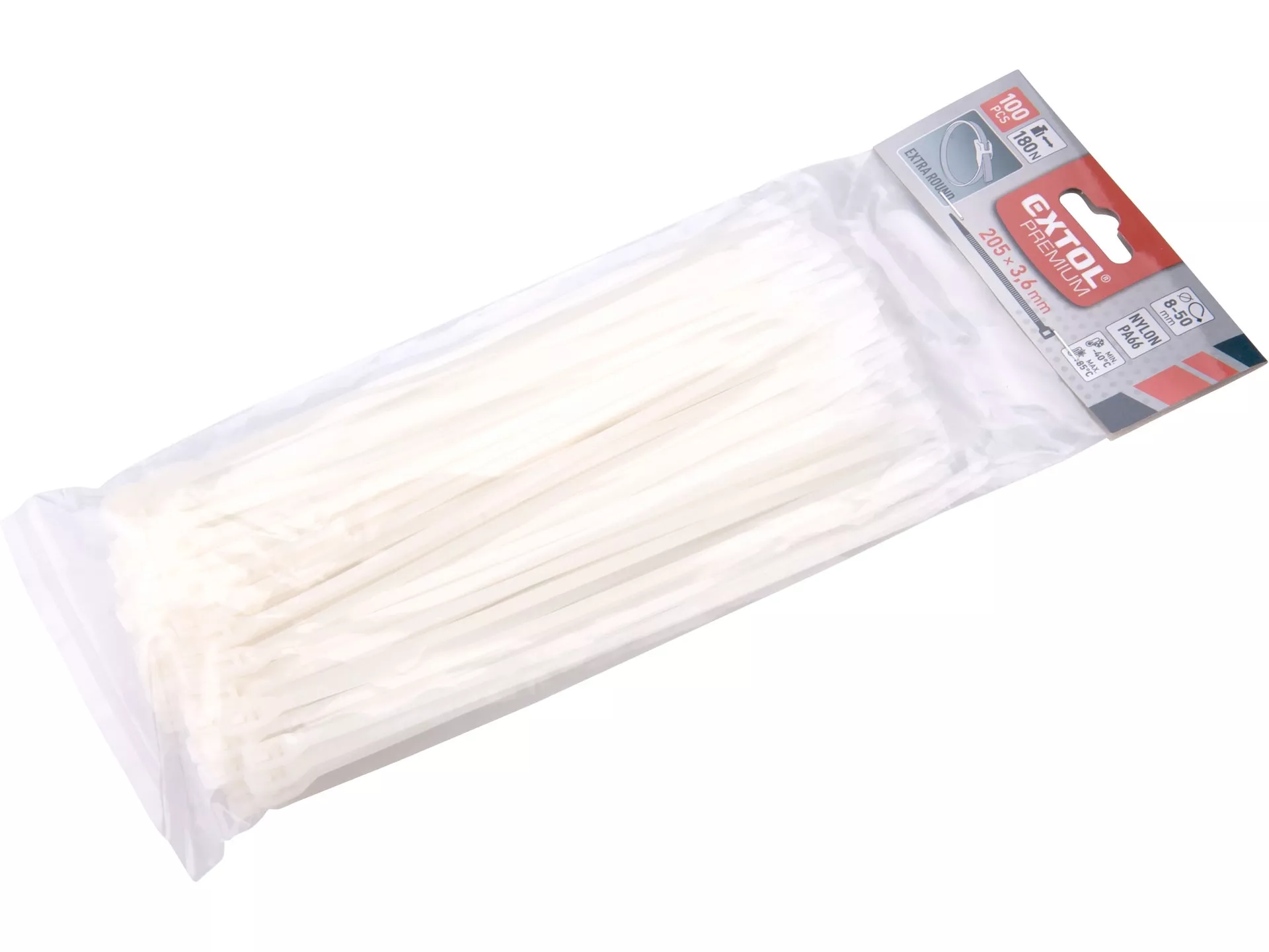 Pásky stahovací na kabely extra, bílé, 205x3,6mm, 100ks, nylon pa66 EXTOL PREMIUM 8856222