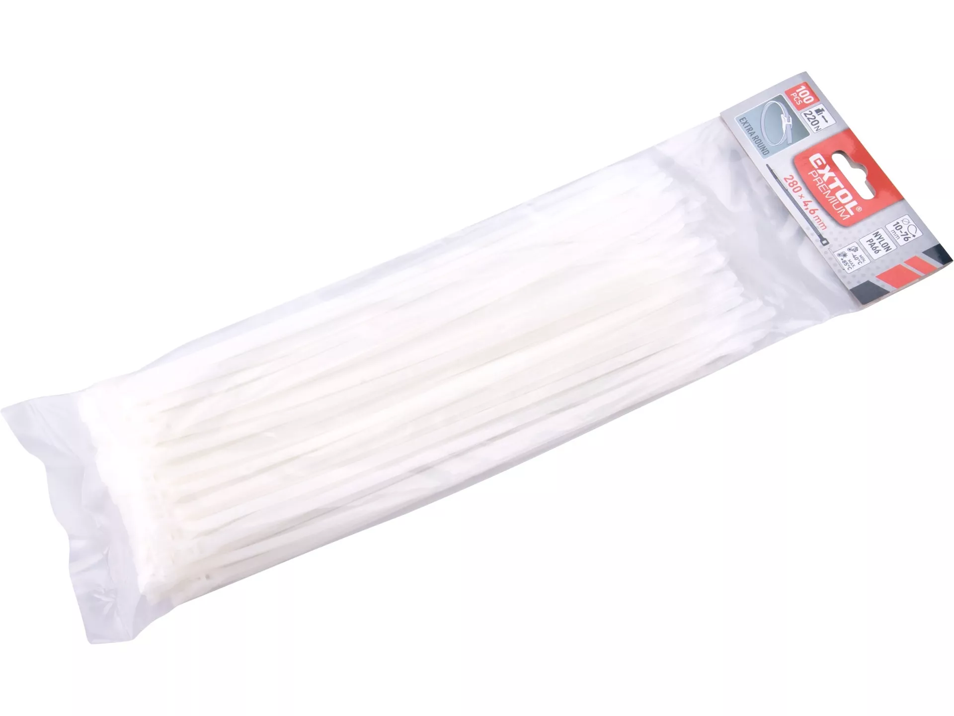 Pásky stahovací na kabely extra, bílé, 280x4,6mm, 100ks, nylon pa66 EXTOL PREMIUM 8856224