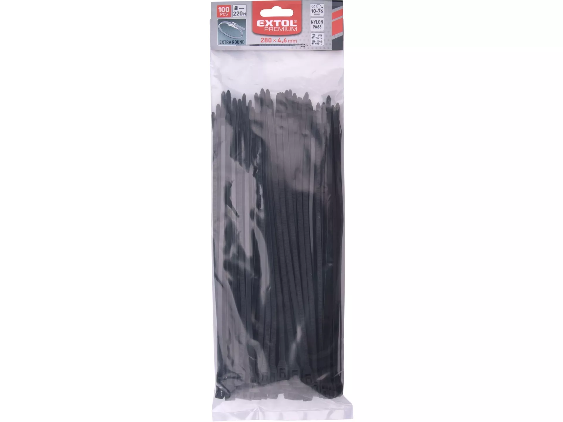 Pásky stahovací na kabely extra, černé, 280x4,6mm, 100ks, nylon pa66 EXTOL PREMIUM 8856234