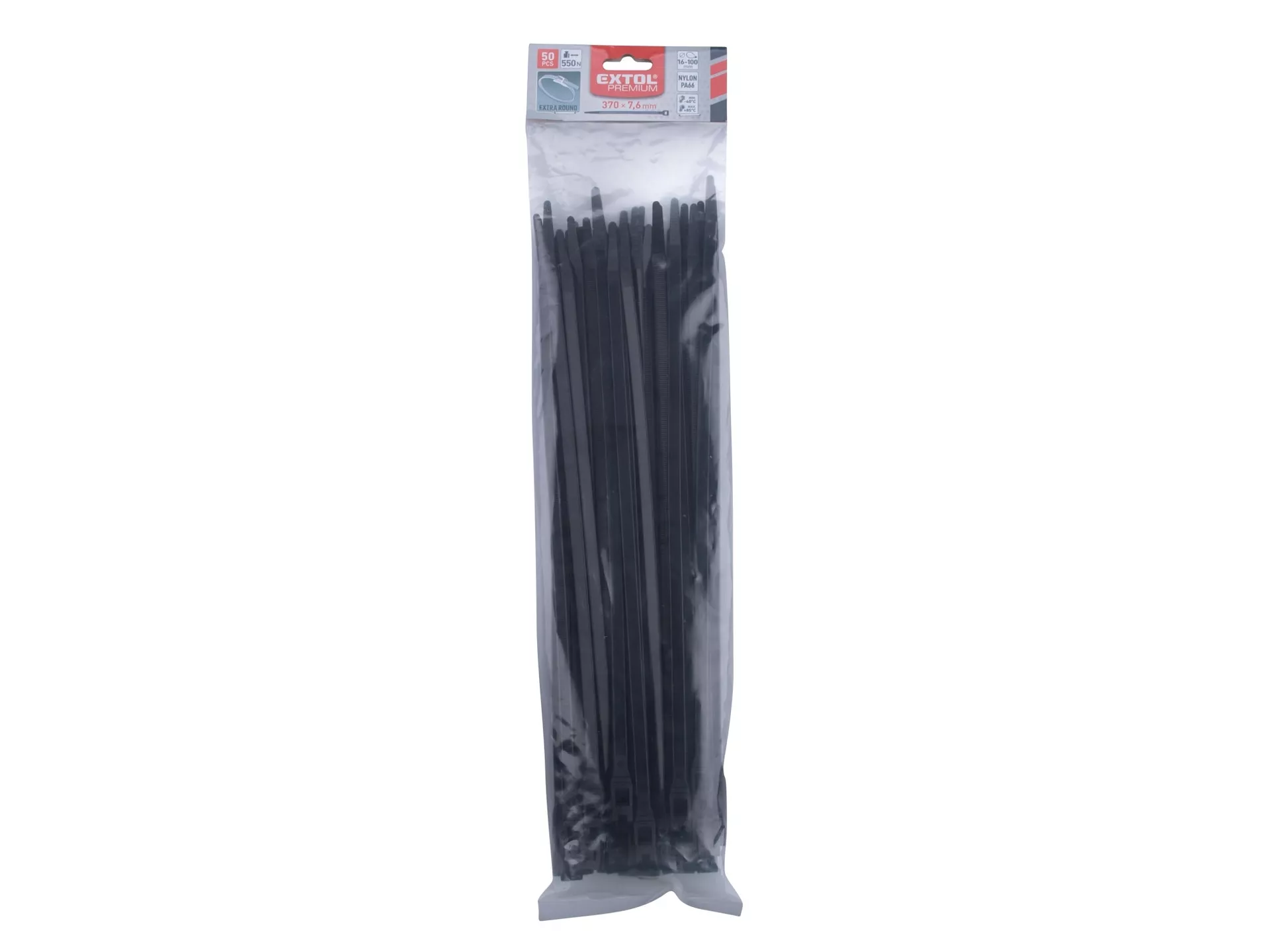 Pásky stahovací na kabely extra, černé, 370x7,6mm, 50ks, nylon pa66 EXTOL PREMIUM 8856238