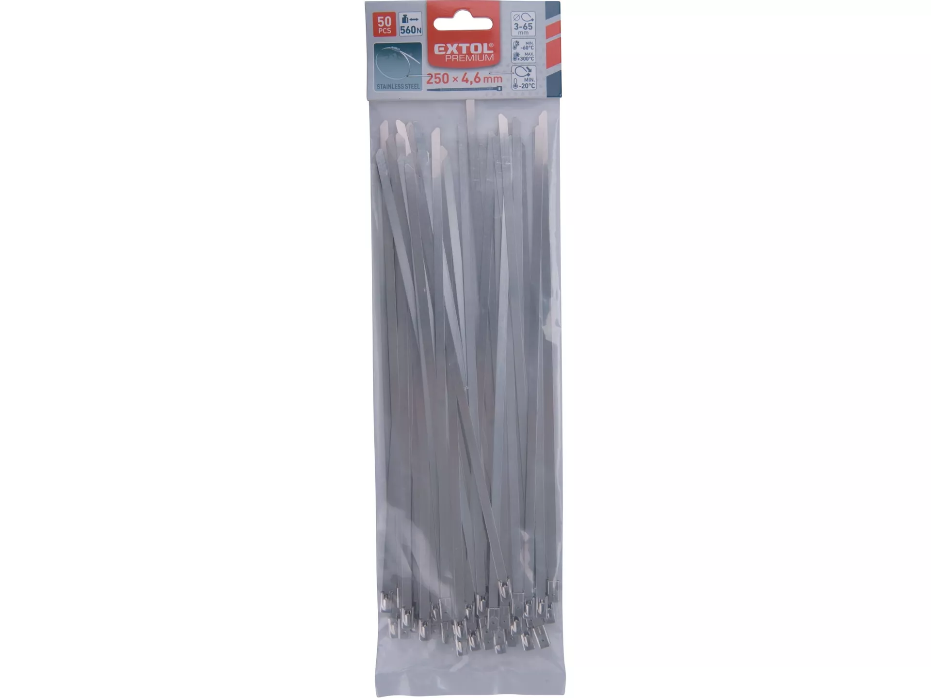 Pásky stahovací nerez, 250x4,6mm, 50ks EXTOL PREMIUM 8856276