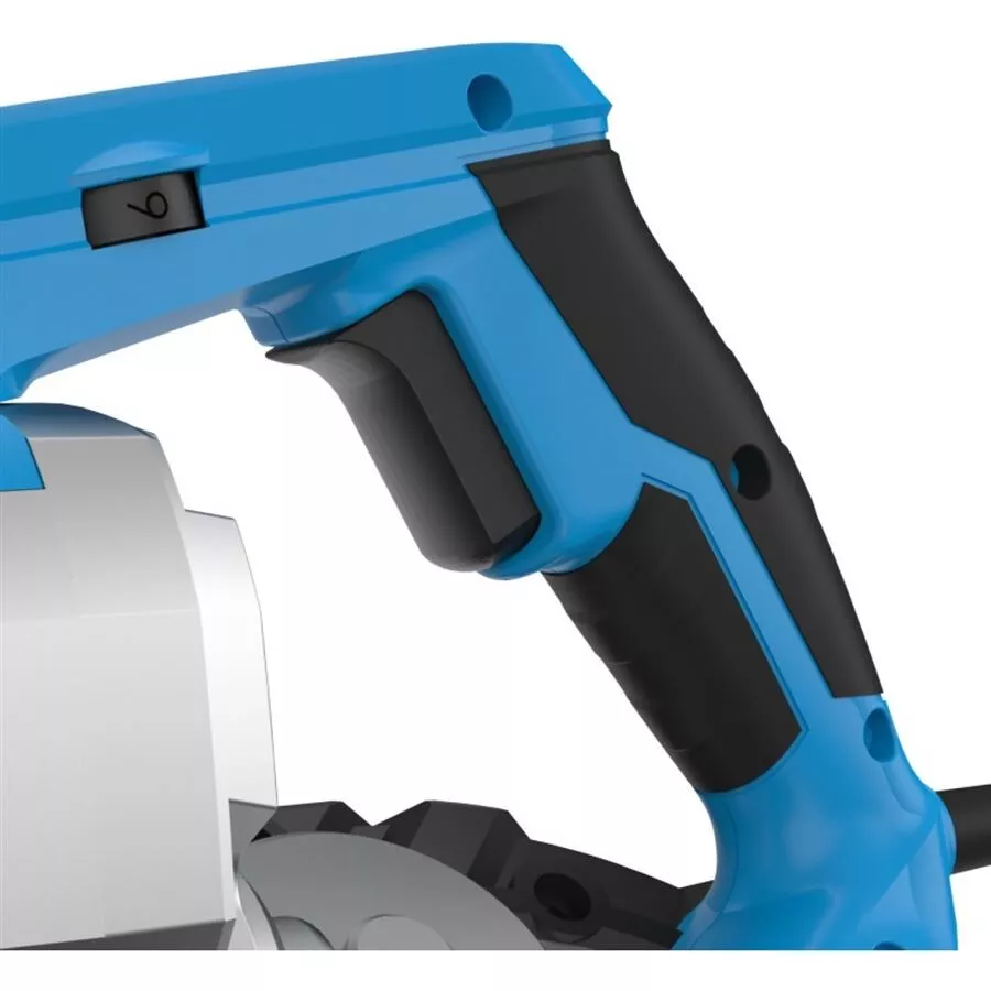 - Konstrukce: robustní kryty pilového pásu, polohovatelná přídavná rukojeť, LED svítilna