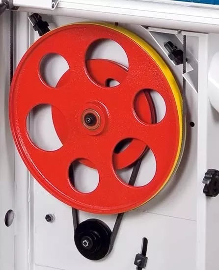 - Boční kontrolní okénko ke kontrole chodu pilového pásu