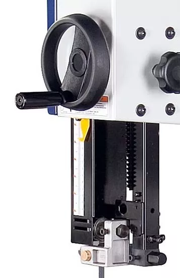 - Rychlé přestavení výšky řezu pomocí otočného knoflíku a ozubené tyče s milimetrovou stupnicí