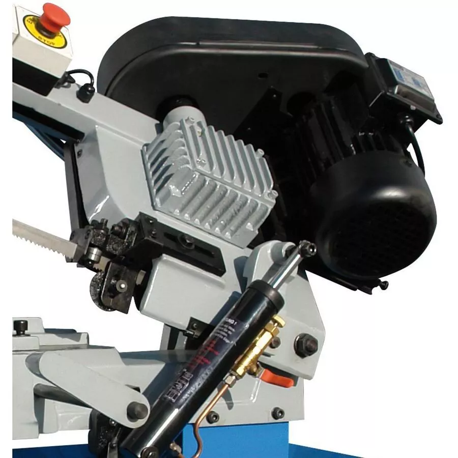 - dle typu materiálu), přesné nastavení přítlačné síly ramene pily (→ hydraulické ovládání), výklopné pilové rameno s funkcí vertikálního řezání, otočný rychloupínací svěrák pro řezy pod úhlem 90 - 45°, funkce automatického koncového vypínání.Motor 750 W/P1 (→ typ provozu: S6/40 %), přehledný ovládací panel včetně nouzového vypínače